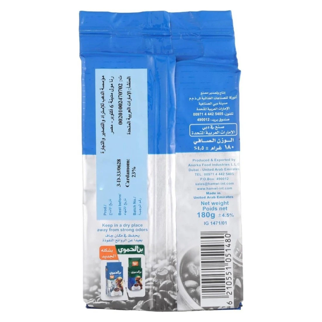 Hamwi Cafe Turkish Coffee with Extra Cardamom is a rich and aromatic coffee blend that combines the traditional flavours of Turkish coffee with an extra hint of cardamom. This 180g pack is perfect for those who enjoy a bold and flavourful coffee experience.