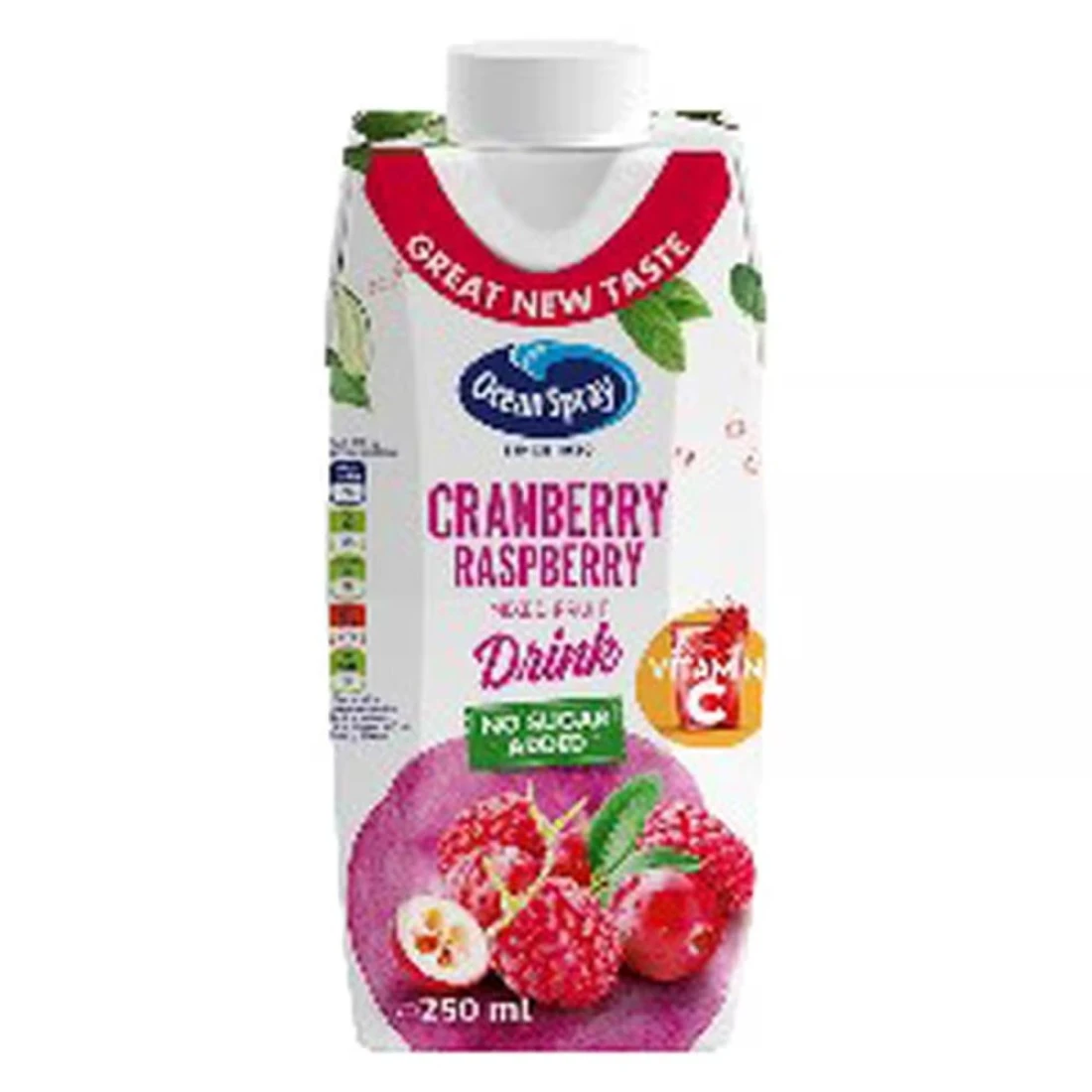 Ocean Spray No Sugar Added Cranberry Raspberry Fruit Drink is a refreshing and delicious beverage. Made with real cranberries and raspberries this drink is packed with natural flavours. With no added sugar it is a healthier alternative to traditional fruit drinks. Enjoy the crisp and tart taste of cranberries combined with the sweetness of raspberries in this convenient 250ml bottle.