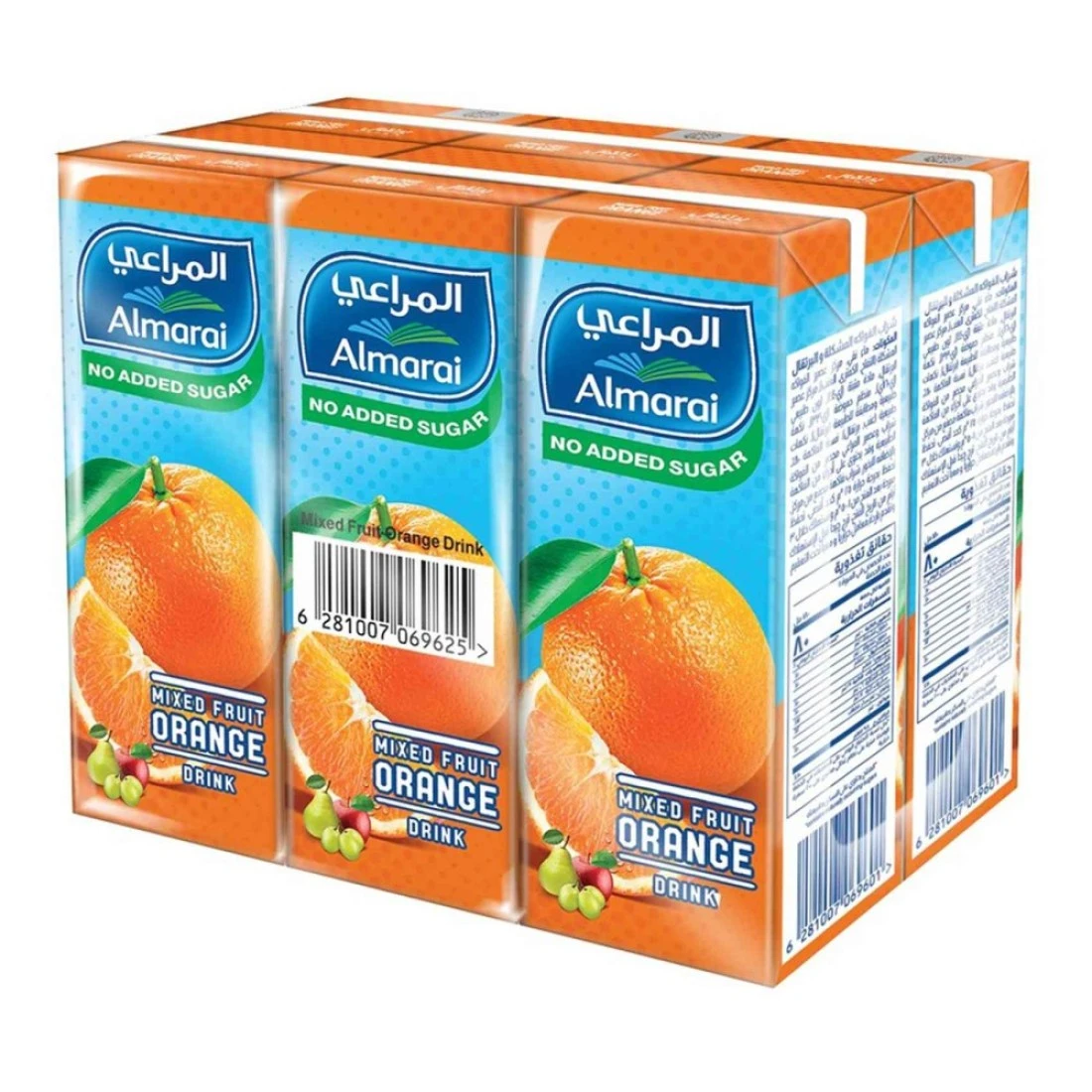 Almarai No Added Sugar Mixed Fruit Orange Juice Drink 180ml Pack of 6
