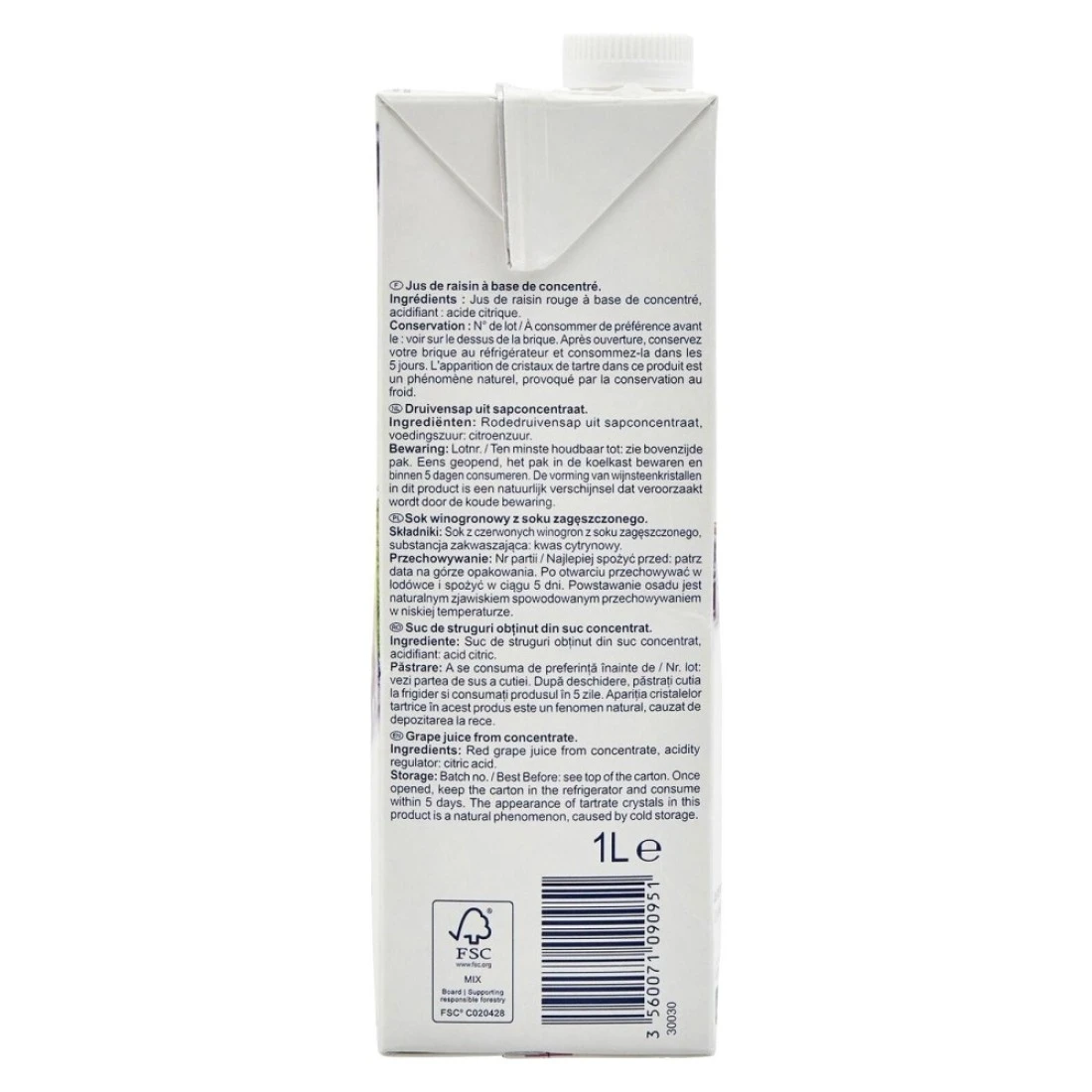 - 100% pure grape juice from concentrate