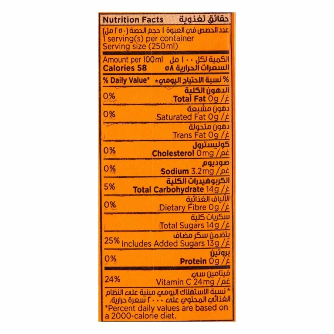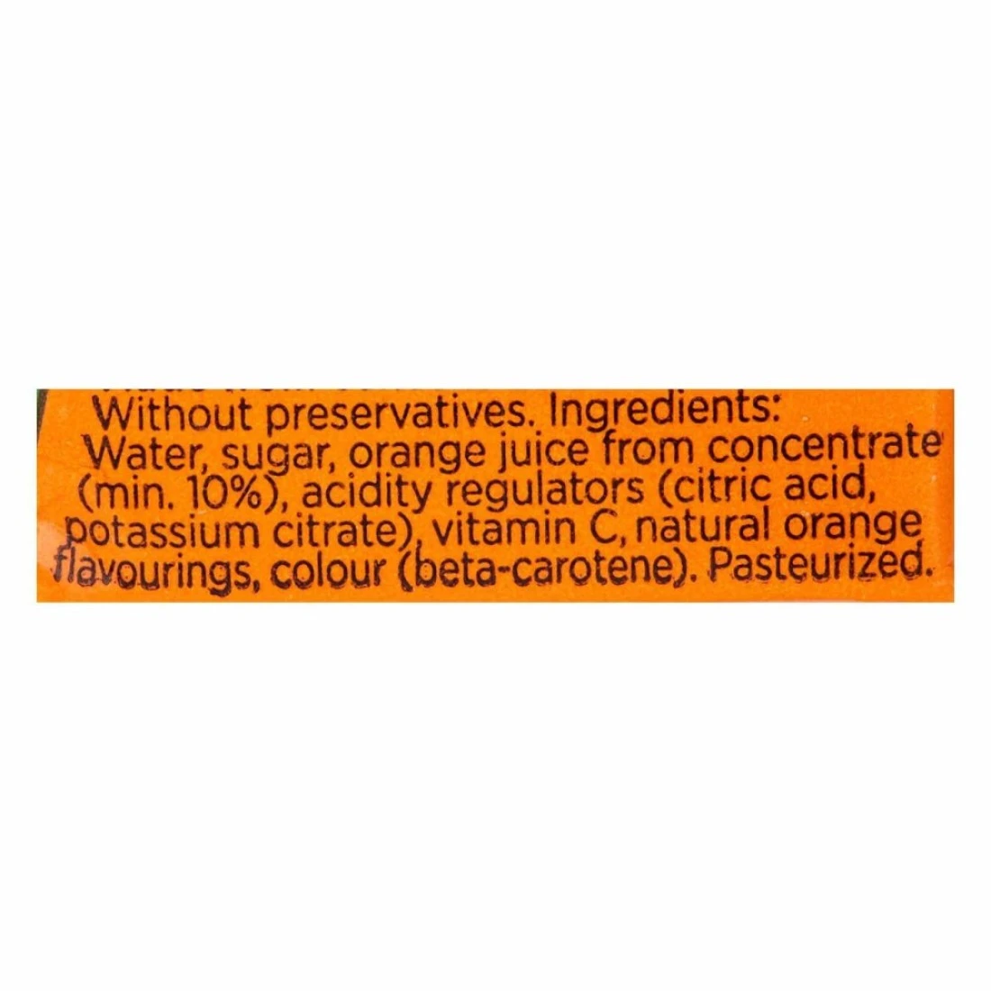 ingredients : Water, Sugar, Orange Juice, Acidity Regulator, Vitamin C, Flavourings, Colours