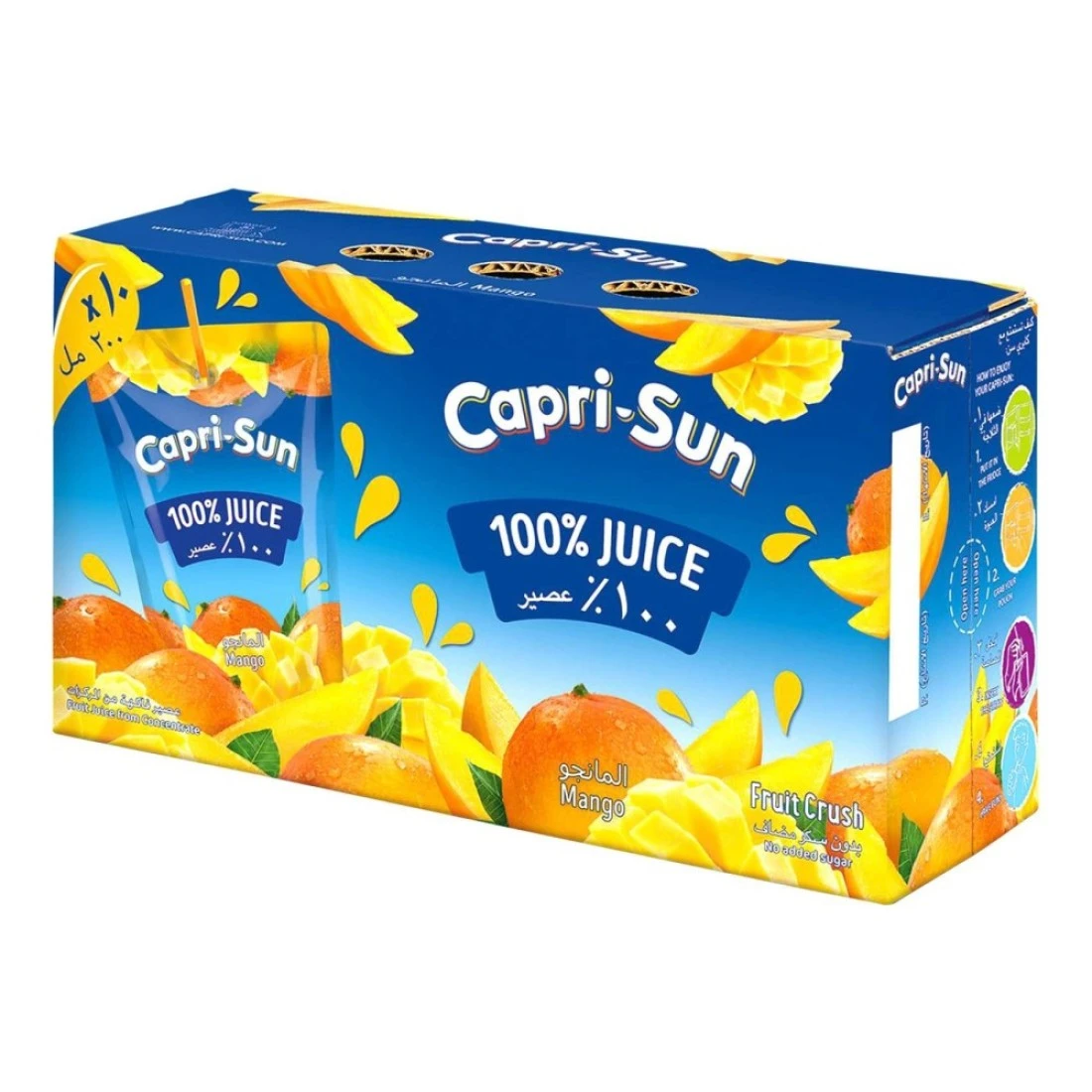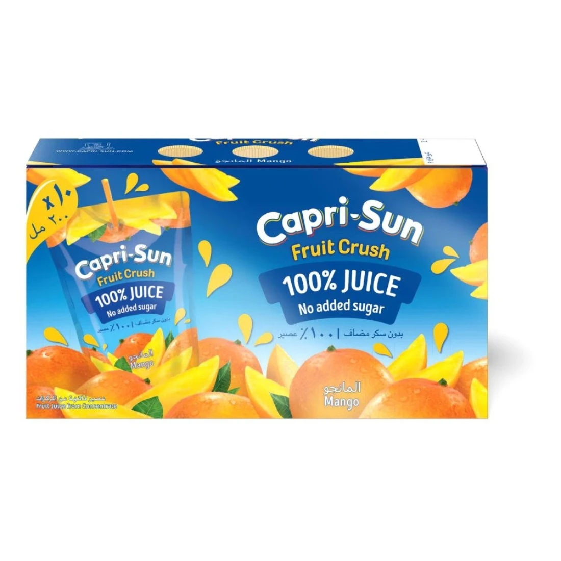 The Capri-Sun Fruit Crush 100% Mango Fruit Juice is a delicious and refreshing drink made from 100% real mango juice. Each pack contains 10 individual 200ml pouches, making it perfect for on-the-go enjoyment.