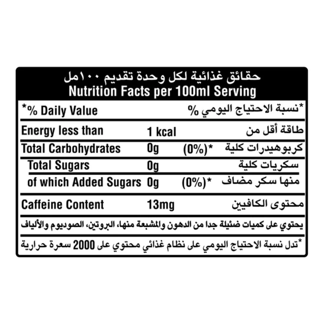 - Carbonated Low-Calorie Cola Flavoured Beverage, less than 1Kcal