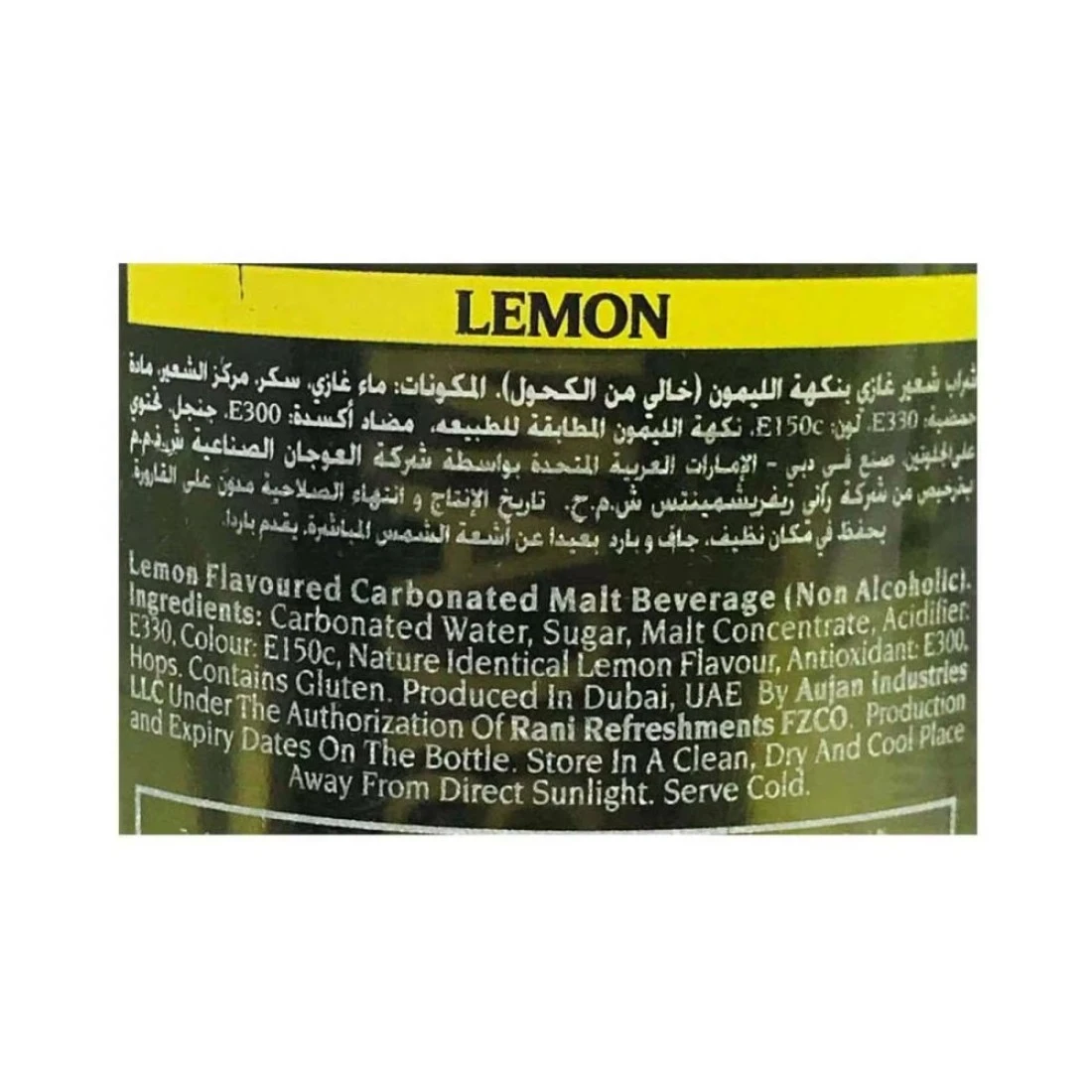 ingredients : Carbonated Water, Sugar, Malt Concentrate, Acidifier: E330, Colour: E150, Nature Identical Lemon Flavour, Antioxidant: E300, Hops