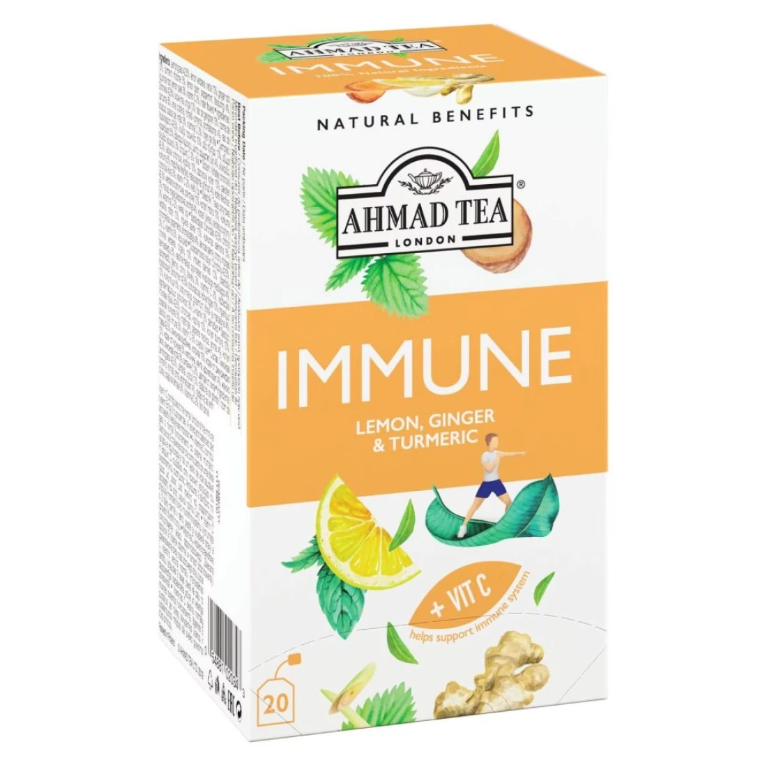 Ahmad Tea Immune Lemon and Ginger with Turmeric Plus Vitamin C Tea Bags 20 Tea Bags