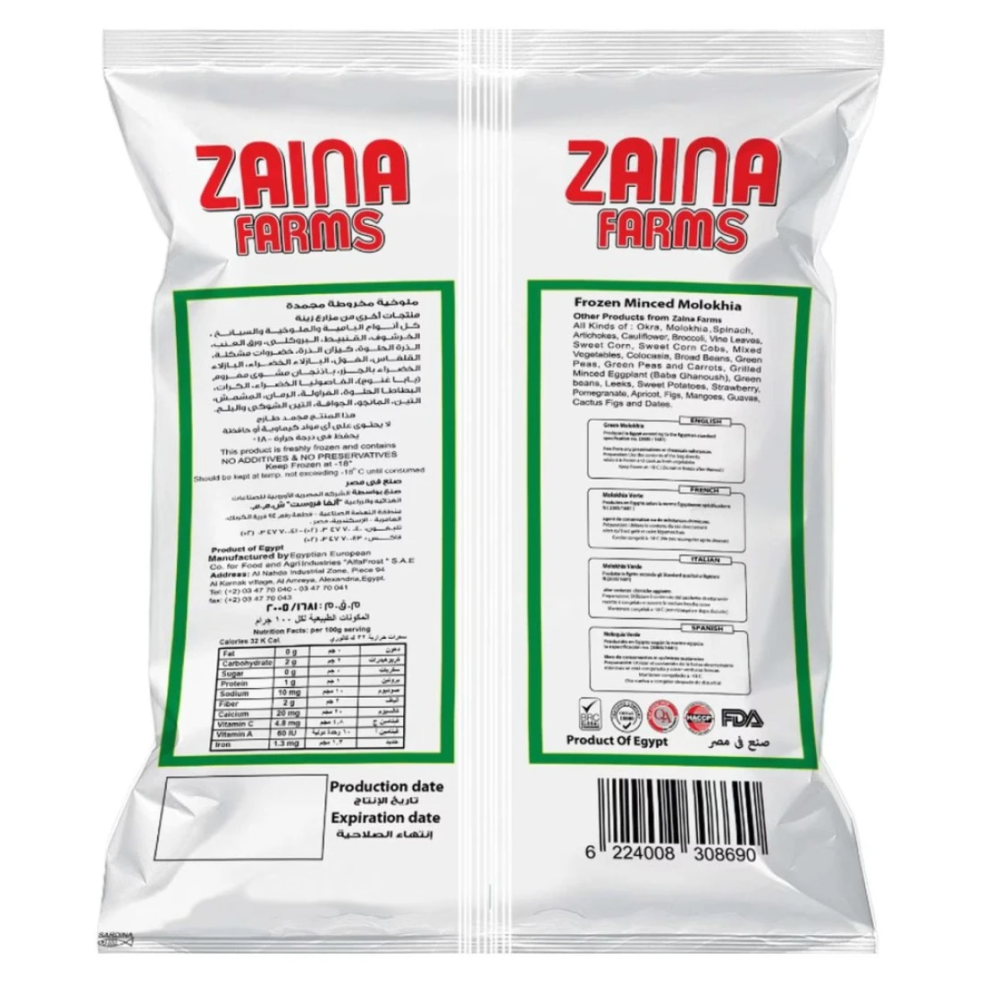 Zaina Farms Frozen Minced Molokhia 400g