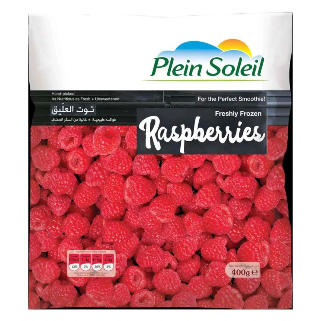 Plein Soleil Raspberries are a pack individual 400g portions of fresh and juicy raspberries. Enjoy the sweet and tangy flavour of these delicious berries in a convenient and easy-to-use packaging.