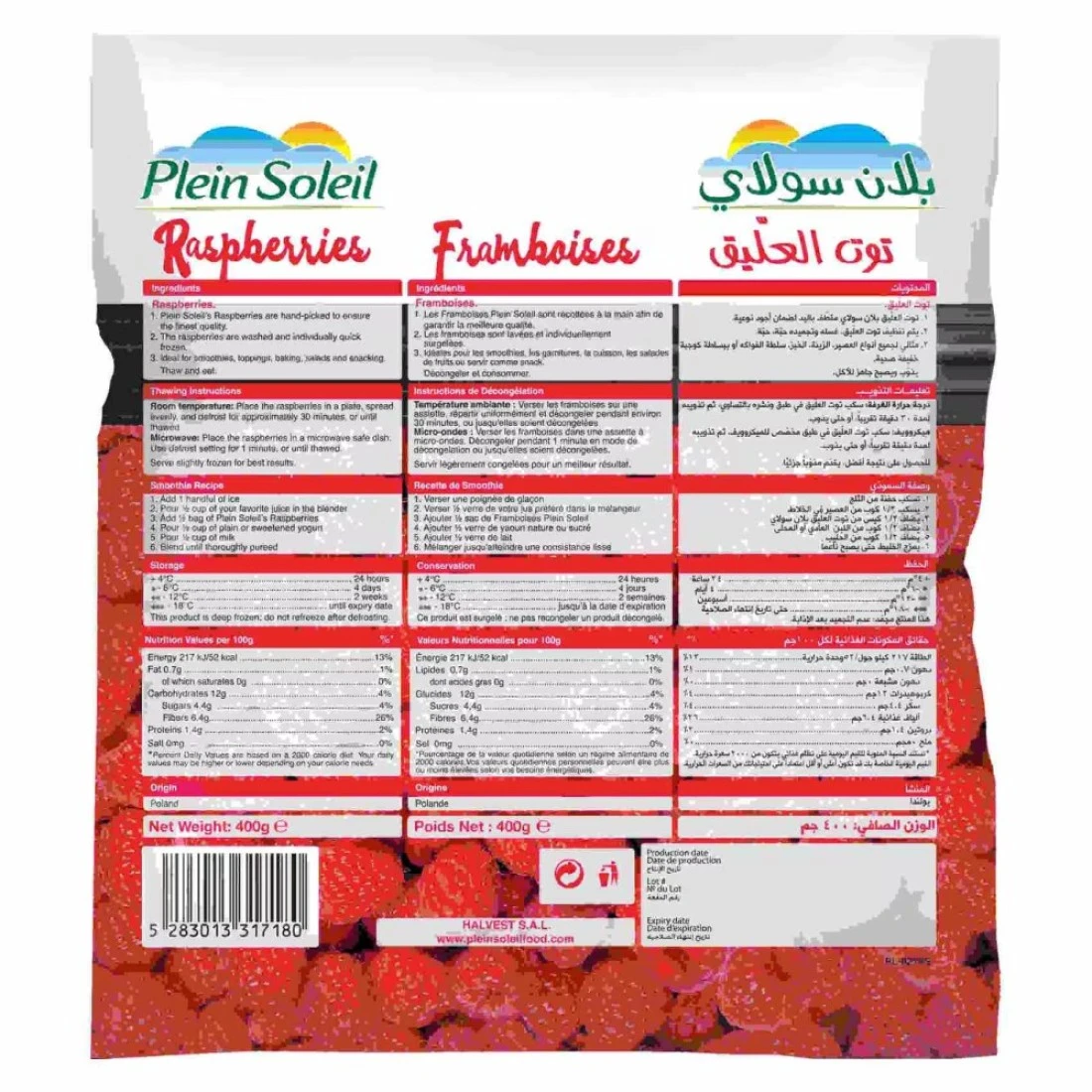Plein Soleil Raspberries 400g