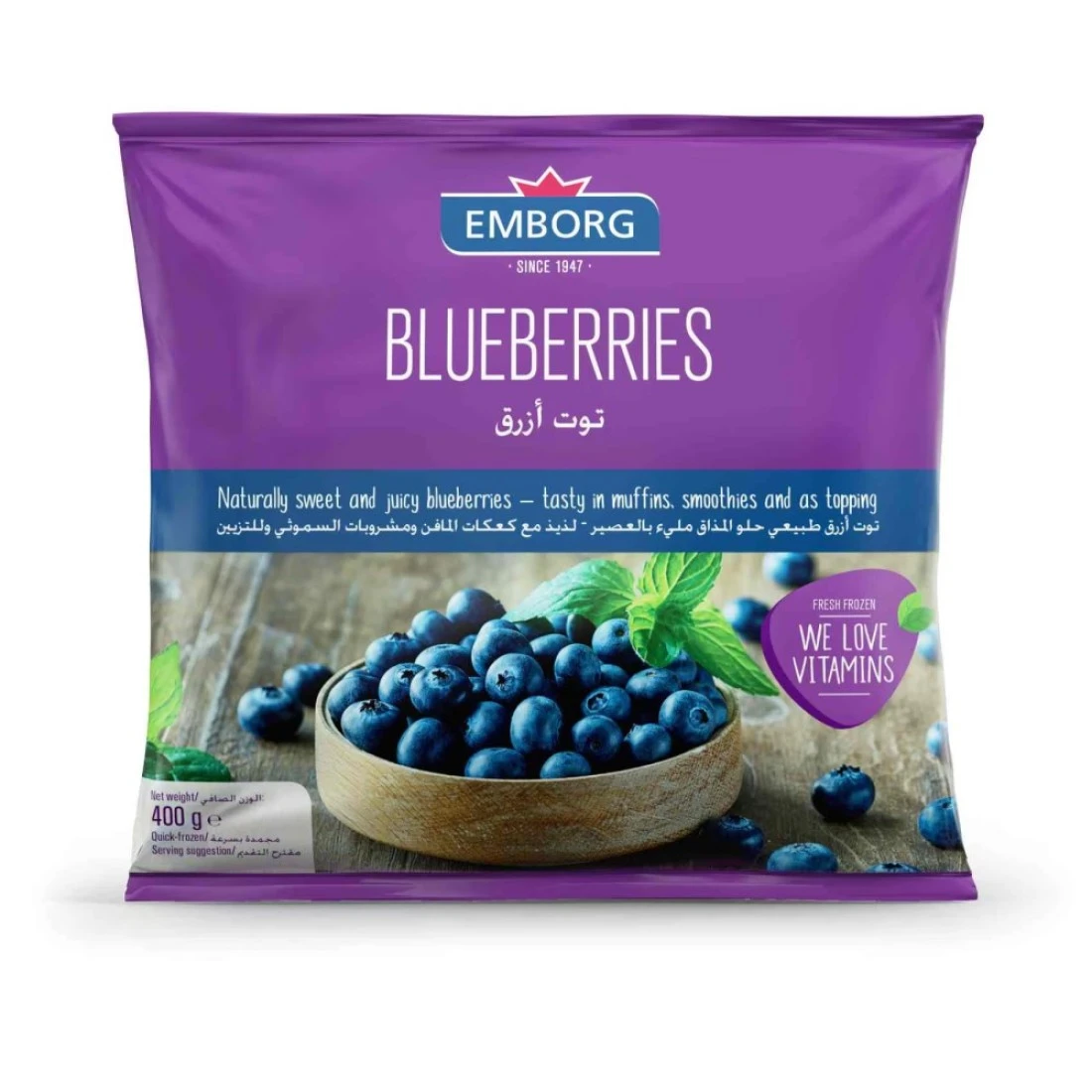 Emborg Blueberry 400g is a delicious and convenient option for adding a burst of fruity flavour to your meals and snacks. These plump and juicy blueberries are packed with antioxidants and vitamins, making them a healthy choice for any time of day. Whether you sprinkle them on top of your morning yogurt, blend them into a smoothie, or bake them into a sweet treat, Emborg Blueberries are sure to satisfy your cravings. With Emborg Blueberry 400g, you can enjoy the taste of fresh blueberries all year round. These frozen berries are picked at the peak of ripeness and then quickly frozen to lock in their natural sweetness and nutritional value. This means that you can enjoy the same great taste and health benefits of fresh blueberries, even when they are out of season. Simply thaw them out and use them in your favorite recipes for a burst of blueberry goodness. Emborg Blueberry 400g is a versatile ingredient that can be used in a wide variety of dishes. From breakfast to dessert, these frozen blueberries can add a pop of colour and flavour to your recipes. Whether you're making pancakes, muffins, or a refreshing summer salad, Emborg Blueberries are the perfect addition. Plus, with their convenient resalable packaging, you can easily store any leftovers for future use. So why wait? Stock up on Emborg Blueberry 400g and start enjoying the taste of summer all year long.