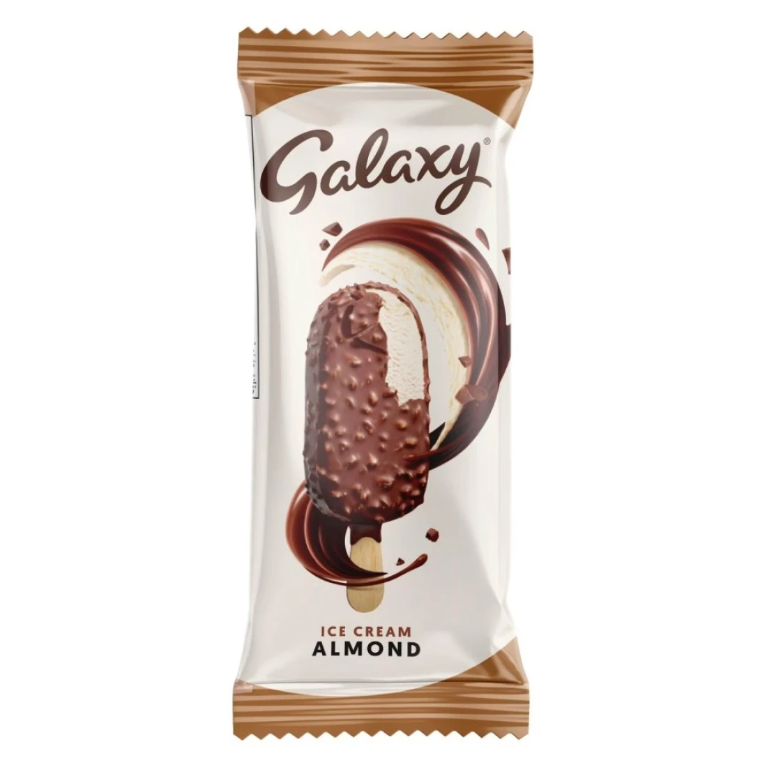 The Galaxy Almond Ice Cream Stick is a delicious treat that combines the smoothness of Galaxy chocolate with the crunch of almonds. Each stick is 58g of pure indulgence, perfect for satisfying your sweet tooth. The creamy ice cream is coated in a layer of rich Galaxy chocolate, making it a heavenly combination of flavours and textures. Indulge in the Galaxy Almond Ice Cream Stick whenever you need a moment of pure bliss. Whether you're enjoying it on a hot summer day or as a special treat after a long day, this ice cream stick is sure to delight your taste buds. The combination of creamy ice cream, crunchy almonds, and velvety Galaxy chocolate is simply irresistible. With its convenient stick form, the Galaxy Almond Ice Cream Stick is easy to enjoy on the go. Whether you're taking a walk in the park or relaxing at home, this ice cream stick is the perfect companion. Treat yourself to a moment of pure indulgence with the Galaxy Almond Ice Cream Stick.