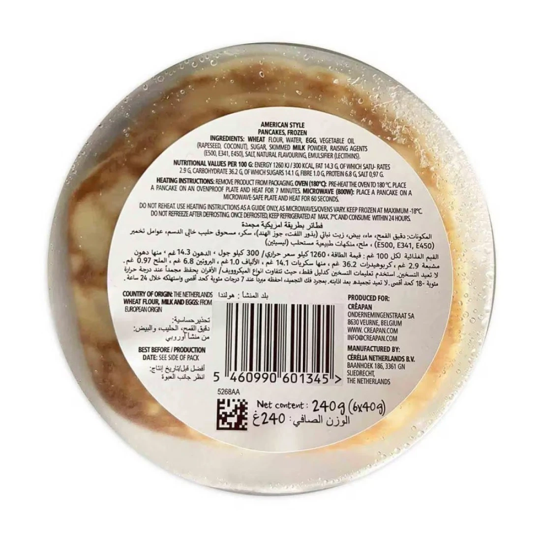 Creapan Delicious American Pancakes are a mouth-watering treat that will satisfy your pancake cravings. Made with high-quality ingredients, these pancakes are fluffy, light, and oh-so-delicious. Whether you enjoy them for breakfast, brunch, or as a sweet treat, these pancakes are sure to be a hit with the whole family. Each pack of Creapan Delicious American Pancakes contains 240g of pancake goodness. Simply heat them in a pan or toaster, and they're ready to be enjoyed. These pancakes are perfect for busy mornings when you don't have time to make pancakes from scratch, but still want a delicious and satisfying breakfast. With Creapan Delicious American Pancakes, you can enjoy the taste of homemade pancakes without all the hassle. These pancakes are the perfect blend of sweet and fluffy, making them a delightful treat any time of day. Whether you top them with maple syrup, fresh fruit, or a dollop of whipped cream, these pancakes are sure to be a hit.