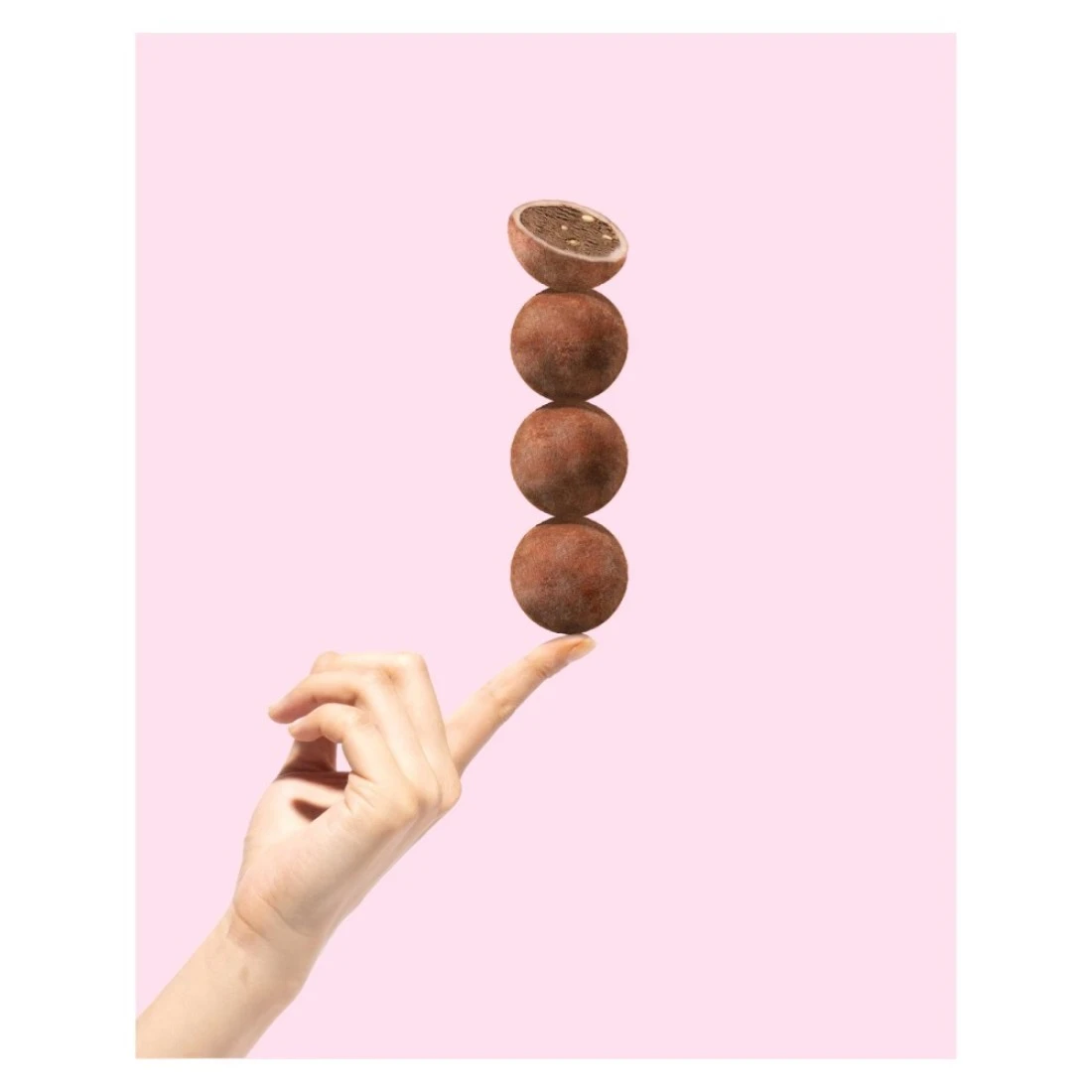 - Lovingly wrapped in mochi dough with a dusting of cocoa