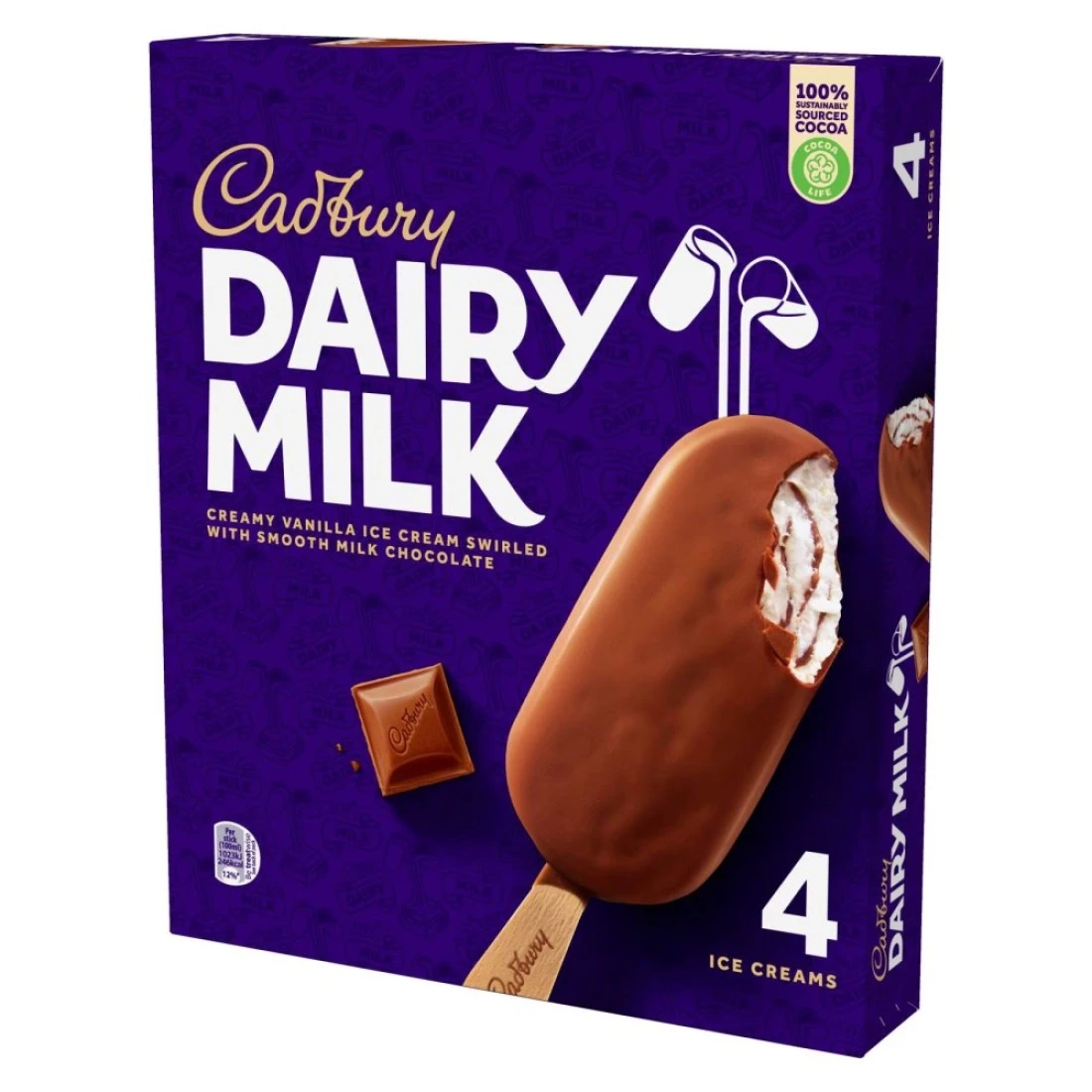 Cadbury Dairy Milk Creamy Vanilla Ice Cream Swirled With Smooth Milk Chocolate 100ml Pack of 4