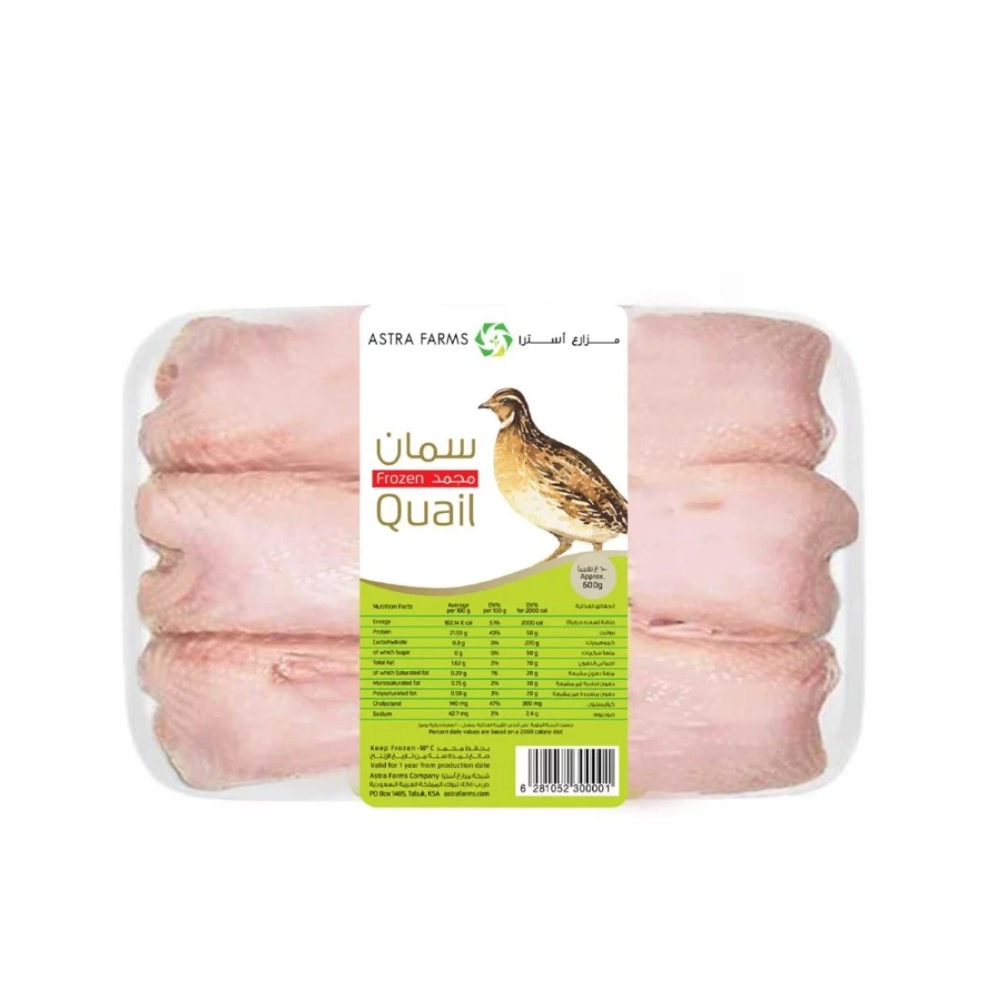 Astra Farm Quails 600g is a delicious and nutritious option for your meals. These quails are raised on Astra Farm, ensuring the highest quality and freshness. Each quail weighs approximately 600g, making them the perfect size for a single serving. Whether you grill, roast, or fry them, Astra Farm Quails 600g are sure to satisfy your taste buds. At Astra Farm, we take pride in providing our customers with the best quail meat available. Our quails are raised in a clean and healthy environment, ensuring their well-being and the quality of their meat. With a weight of 600g, each quail is plump and meaty, making them a great choice for a hearty meal. Try Astra Farm Quails 600g today and experience the difference in taste and quality. If you're looking for a unique and flavourful protein option, look no further than Astra Farm Quails 600g. These quails are raised on our farm, where they are fed a nutritious diet and given plenty of space to roam. With a weight of 600g, they are the perfect size for a satisfying meal. Whether you're cooking for yourself or entertaining guests, Astra Farm Quails 600g are sure to impress with their tender meat and rich flavour.