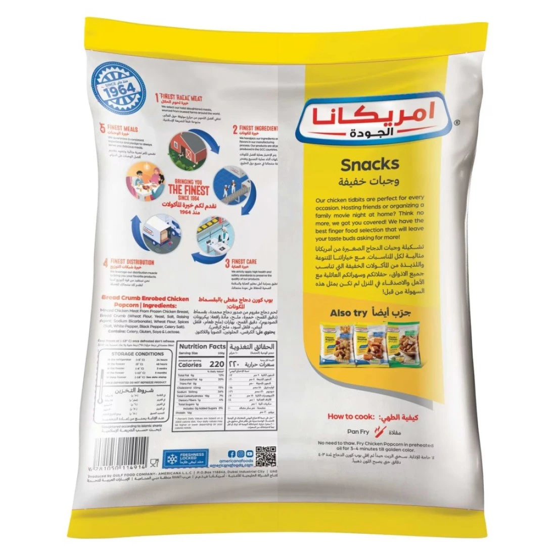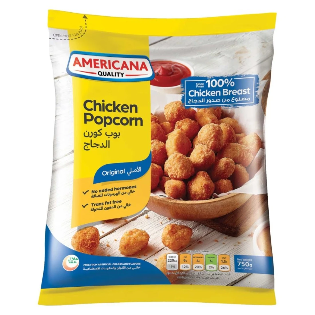 Americana Chicken Popcorn 750g is a delicious and convenient snack option for chicken lovers. Made from high-quality chicken breast, these bite-sized pieces are coated in a crispy and flavourful batter. Whether you're hosting a party or looking for a quick and easy meal, this 750g pack is perfect for satisfying your cravings. The Americana Chicken Popcorn 750g is also a great option for kids' lunchboxes or as a tasty addition to salads and wraps. With its crispy texture and juicy chicken, it's sure to be a hit with the whole family. Plus, the convenient packaging makes it easy to store and prepare whenever you need a quick and tasty snack. With Americana Chicken Popcorn 750g, you can enjoy the taste of crispy and flavourful chicken without the hassle of frying. Simply pop them in the oven or air fryer for a few minutes, and you'll have a delicious snack or meal ready to enjoy. So why wait? Grab a pack of Americana Chicken Popcorn 750g and satisfy your cravings today!