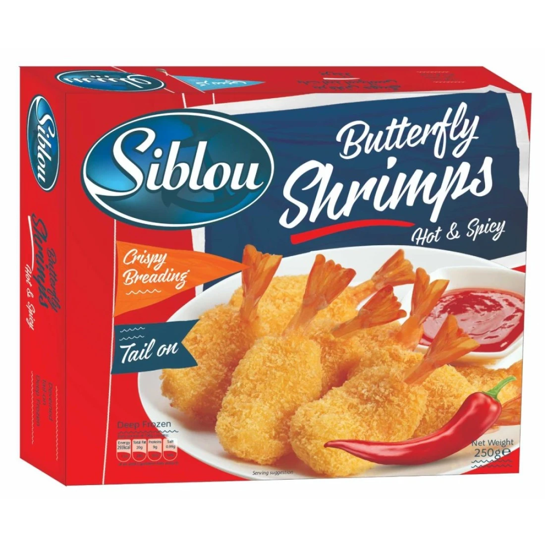Siblou Breaded Butterfly Shrimps 250g are a delicious and convenient seafood option for any meal. These butterfly shrimps are coated in crispy breadcrumbs, giving them a satisfying crunch with every bite. These breaded butterfly shrimps are perfect for a quick and easy appetizer, snack, or main course. Simply bake or fry them until golden brown and serve with your favorite dipping sauce for a tasty seafood treat. With Siblou Breaded Butterfly Shrimps 250g, you can enjoy the taste of restaurant-quality shrimp in the comfort of your own home. Stock up on these convenient and delicious seafood bites for a quick and tasty meal anytime.