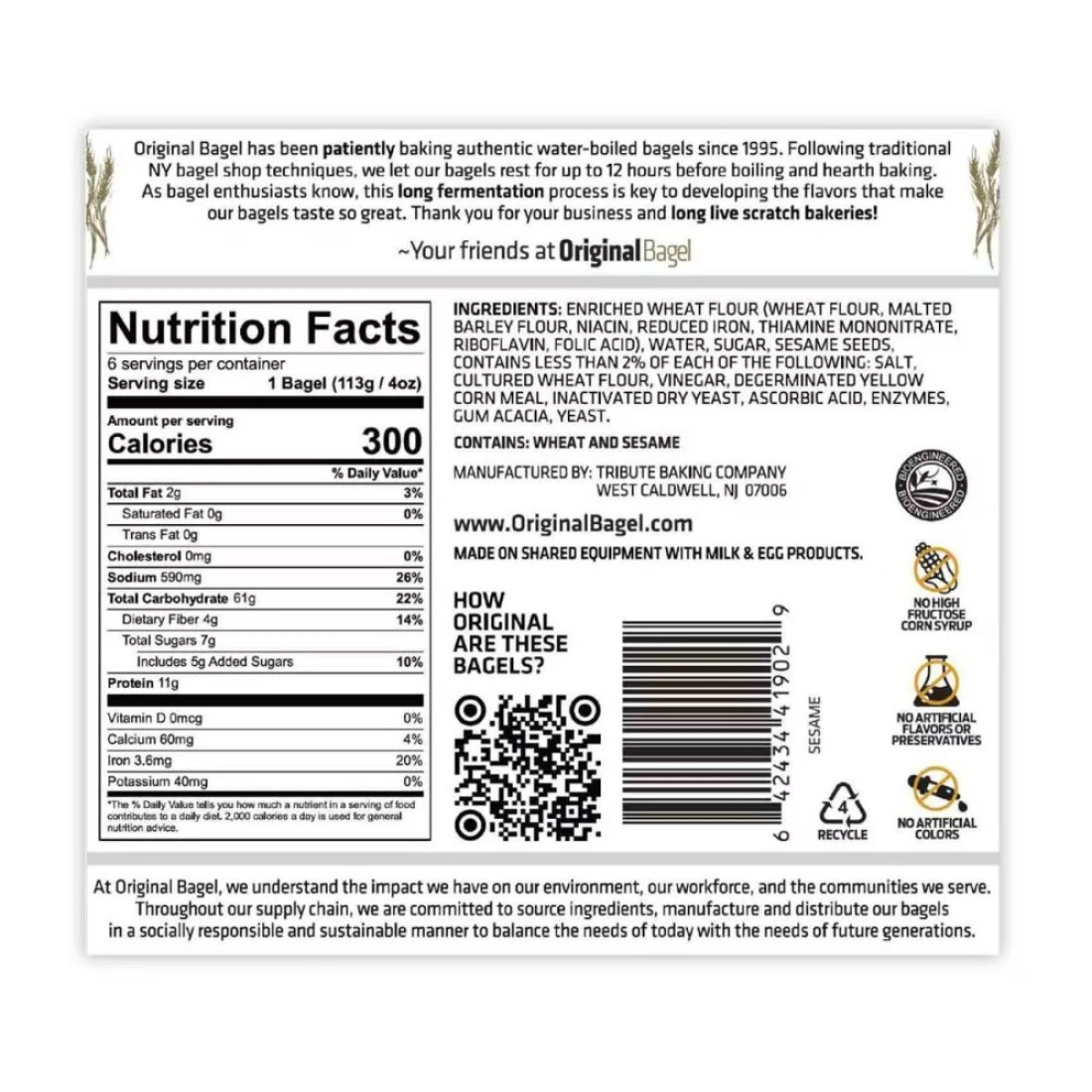 ingredients : Enriched Wheat Flour (Wheat Flour, Malted Barley Flour, Niacin, Reduced Iron, Thiamine Mononitrate, Riboflavin, Folic Acid), Water, Sugar, Sesame Seeds, Contains Less Than 2% Of Each Of The Following: Salt, Cultured Wheat Flour, Vinegar, Degerminated Yellow Corn Meal, Inactivated Dry Yeast, Ascorbic Acid, Enzymes, Gum Acacia, Yeast.