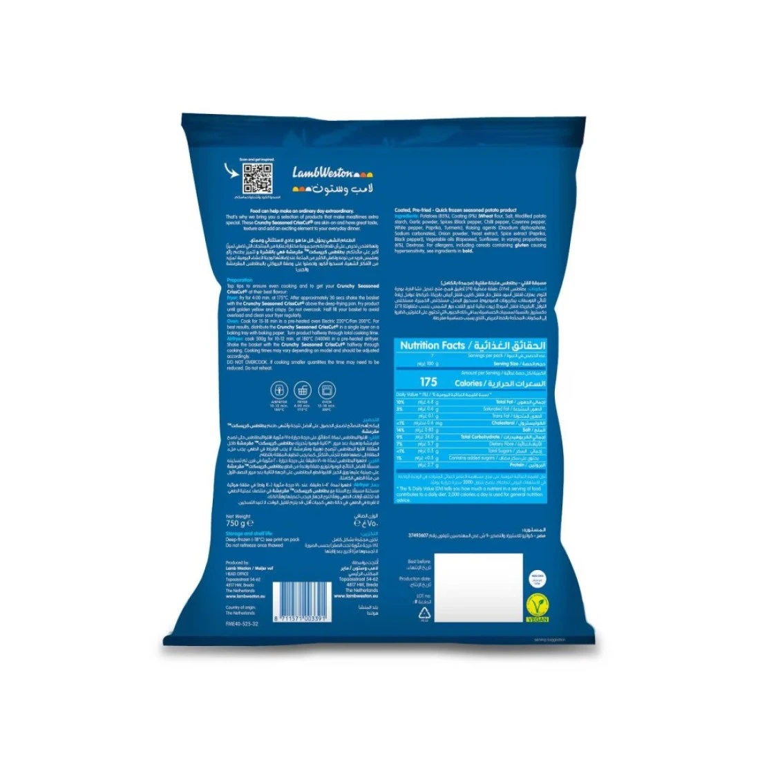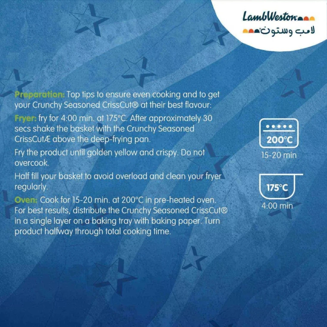 Lamb Weston Seasoned Crisscut 750g is a delicious and convenient snack option. These crisscut fries are seasoned to perfection, giving them a unique and irresistible flavour. Whether you're hosting a party or simply craving a tasty treat, these crisp fries are sure to satisfy your cravings. One of the best things about Lamb Weston Seasoned Crisscut 750g is its versatility. They can be enjoyed on their own as a snack or served as a side dish with burgers, sandwiches, or any other main course. Their crisscut shape makes them fun and interesting to eat, adding a touch of excitement to any meal. Not only are Lamb Weston Seasoned Crisscut 750g delicious, but they are also easy to prepare. Simply pop them in the oven or air fryer, and they'll be ready to enjoy in no time. With their crispy exterior and soft interior, these crisscut fries are a crowd-pleaser that will leave everyone wanting more.