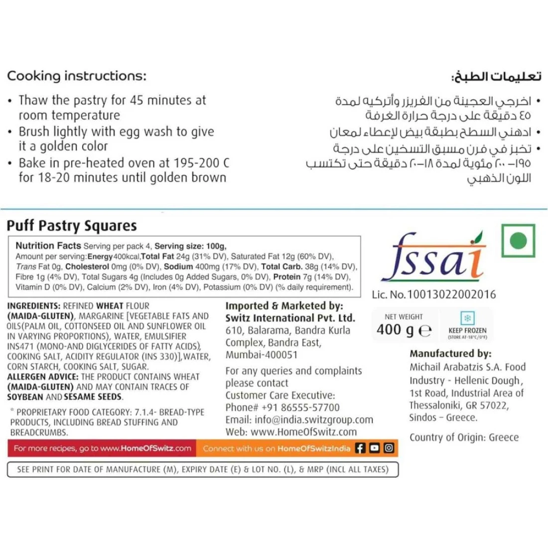 - Bake multiple dishes with the premium Switz puff pastry squares