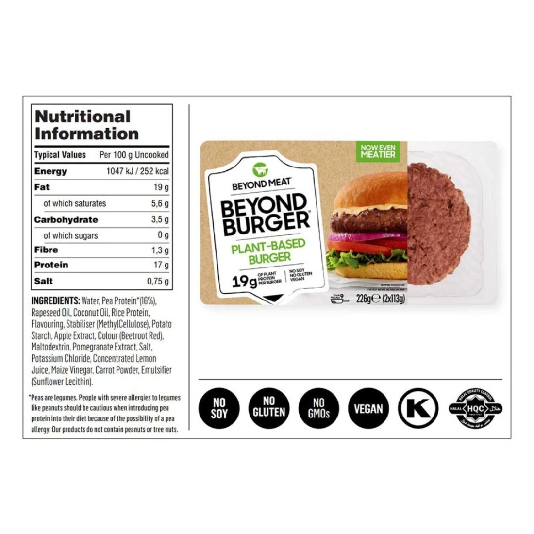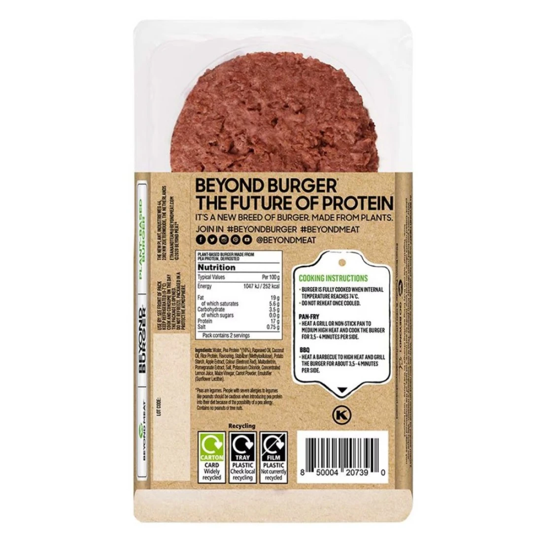 The Beyond Meat Plant-Based Burger is a delicious and healthy alternative to traditional meat burgers. Made from a blend of plant-based proteins, this burger patty is free from cholesterol and antibiotics. It has a meaty texture and is packed with flavour, making it a great option for vegans, vegetarians, and anyone looking to reduce their meat consumption. One of the best things about the Beyond Meat Plant-Based Burger is its versatility. It can be cooked on the grill, stovetop, or even in the oven. Whether you prefer a classic burger with all the fixings or want to get creative with toppings, this plant-based patty is a great base for any burger creation. Plus, it's easy to cook and ready in just a few minutes. Not only is the Beyond Meat Plant-Based Burger a tasty and convenient option, but it also has a positive impact on the environment. Producing plant-based proteins requires less land, water, and energy compared to traditional meat production. By choosing this burger, you can enjoy a delicious meal while reducing your carbon footprint and contributing to a more sustainable food system.
