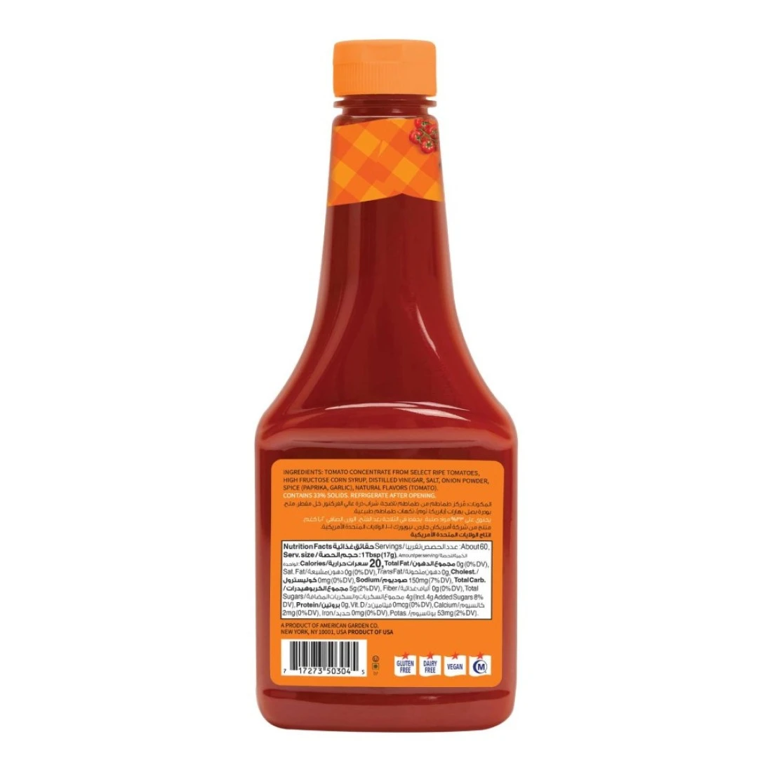 The American Garden Tomato Ketchup Squeeze in a 1020g bottle is a delicious condiment that adds the perfect touch of tangy sweetness to your favourite meals. Made with ripe tomatoes and a blend of spices, this ketchup is the perfect complement to burgers, fries, hot dogs, and more. Its convenient squeeze bottle makes it easy to use and its large size ensures you'll have plenty on hand for all your ketchup needs. Whether you're grilling up a backyard barbecue or enjoying a quick snack, American Garden Tomato Ketchup is the perfect addition to any meal.