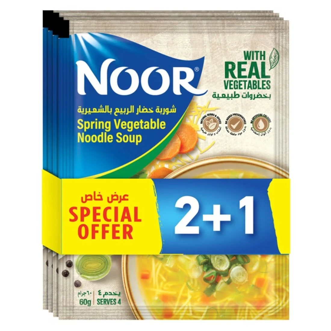 - Delicious and nutritious 60g pack of Noor Spring Vegetable Noodle Soup, perfect for a quick meal