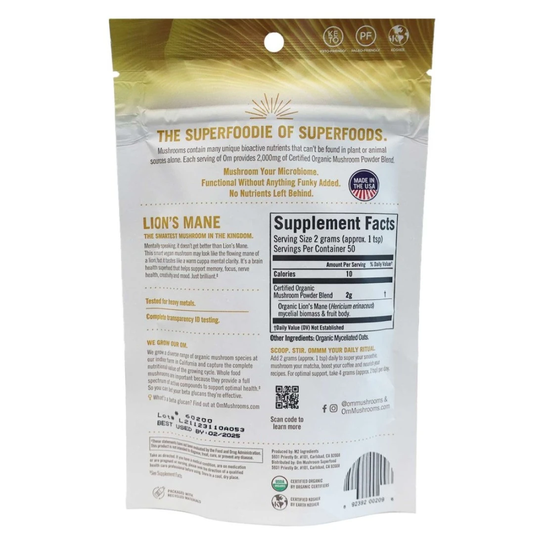 OM Lion's Mane Mushroom Superfood Powder 100g