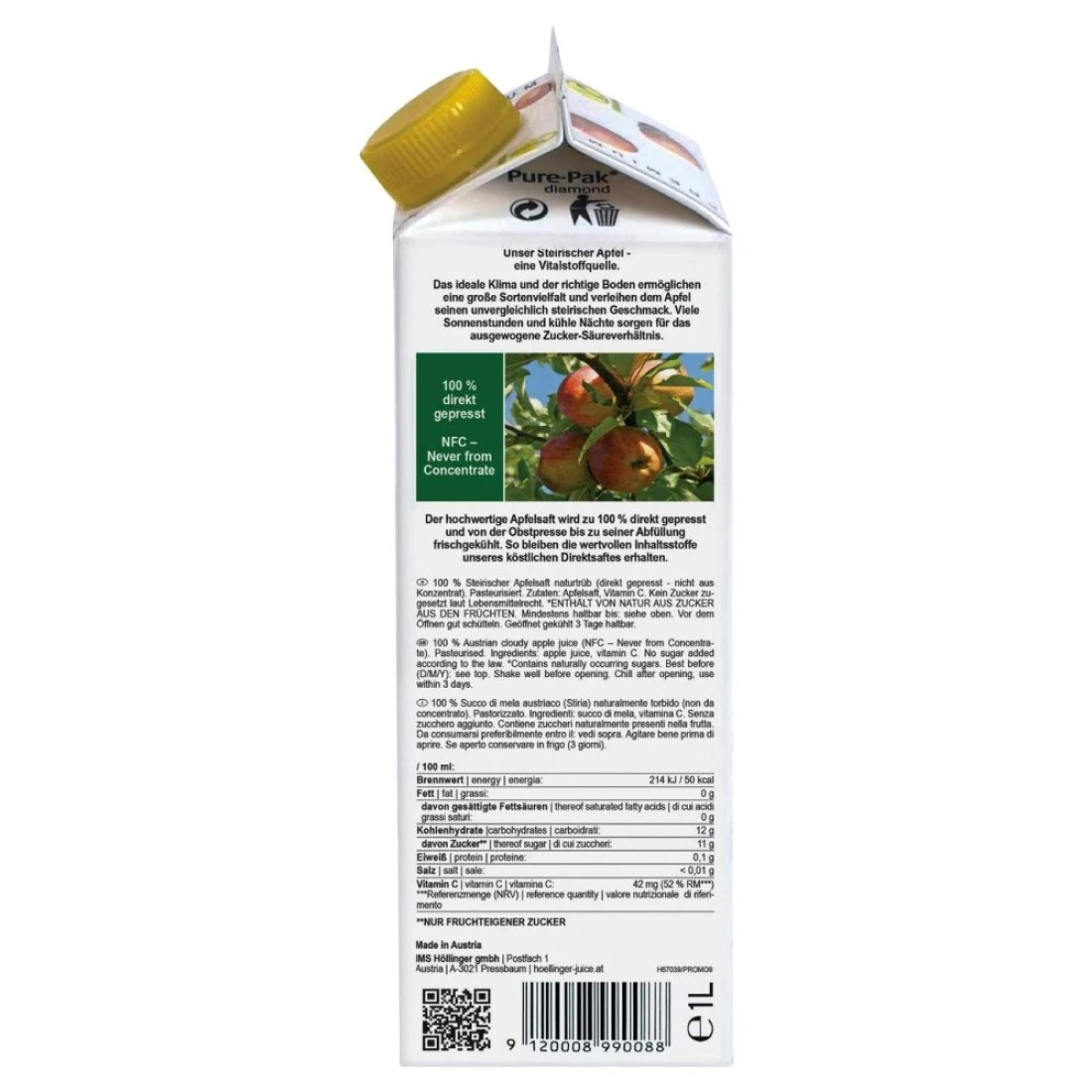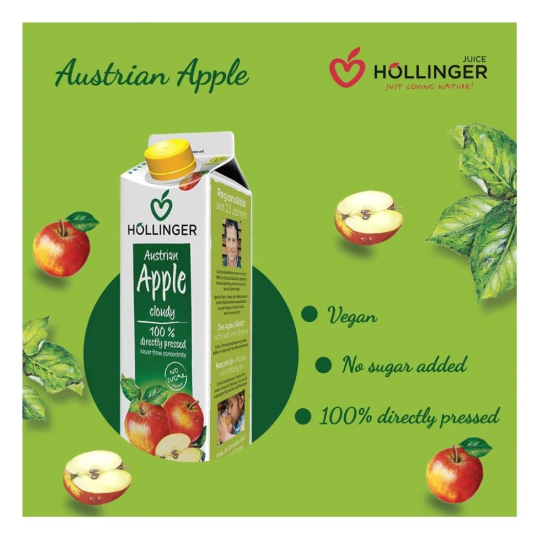 Hollinger Austrian Apple Juice, 1L Pack of 2