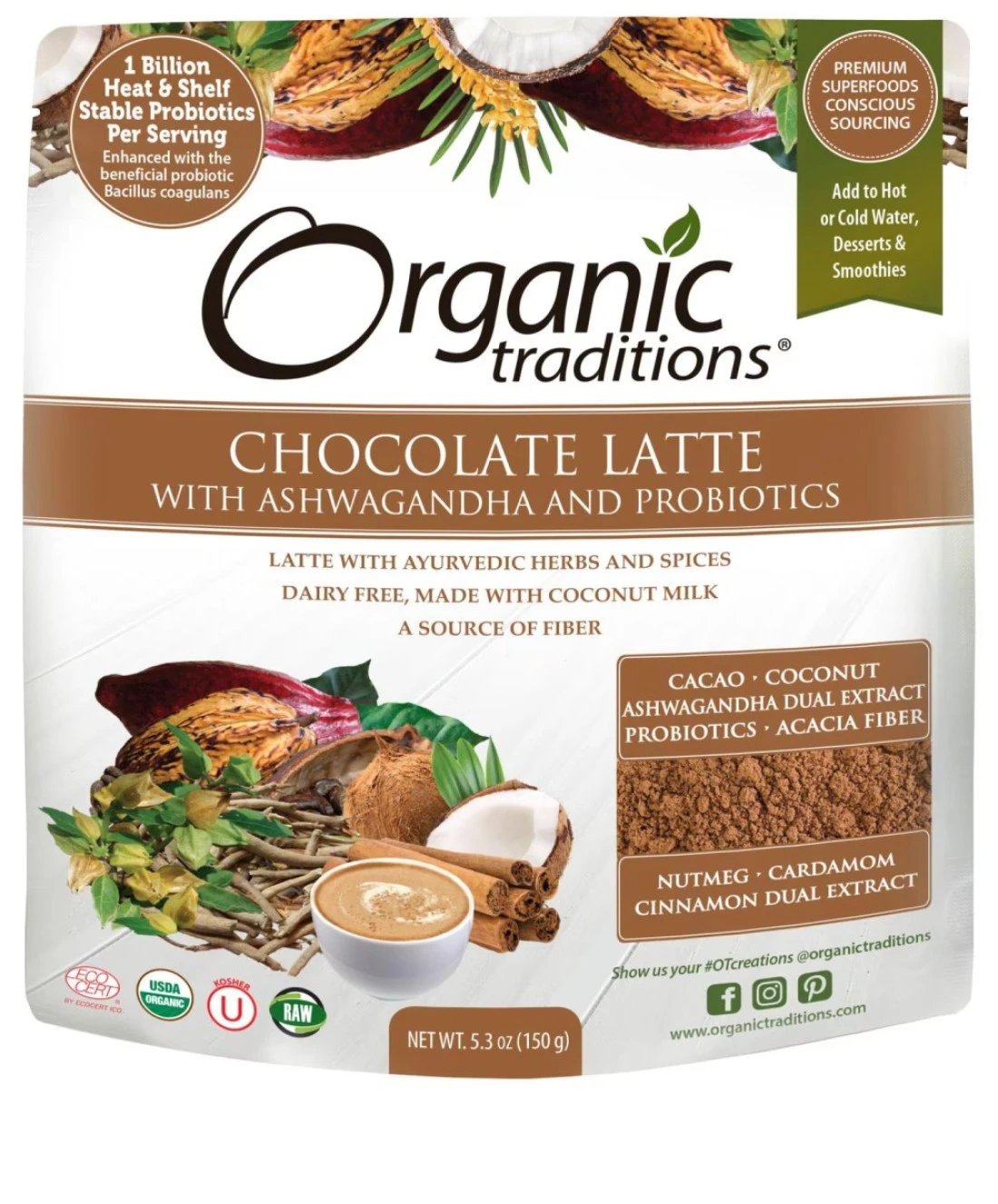 Organic Traditions Chocolate Latte With Ashwagandha And Probiotics 150g