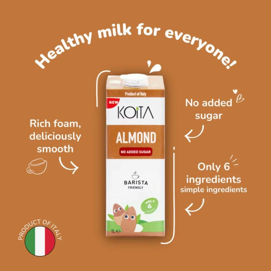 Koita Almond No Added Sugar Milk 100% Plant-Based Dairy & Lactose Free 1L