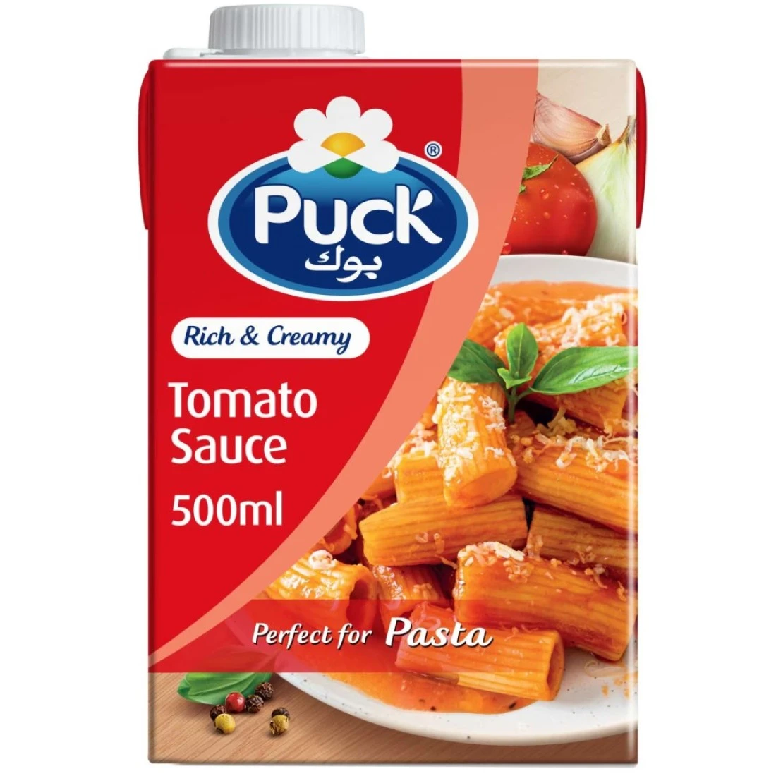 Puck Tomato Sauce With Cream is a delicious and creamy sauce made from ripe tomatoes and rich cream. It adds a creamy and tangy flavour to your favourite dishes, such as pasta, pizza, and lasagna. With its smooth texture and bold taste, this sauce is sure to elevate your meals to the next level. It comes in a convenient 500ml bottle, making it easy to use and store. Whether you're cooking for yourself or entertaining guests, Puck Tomato Sauce With Cream is a must-have pantry staple.