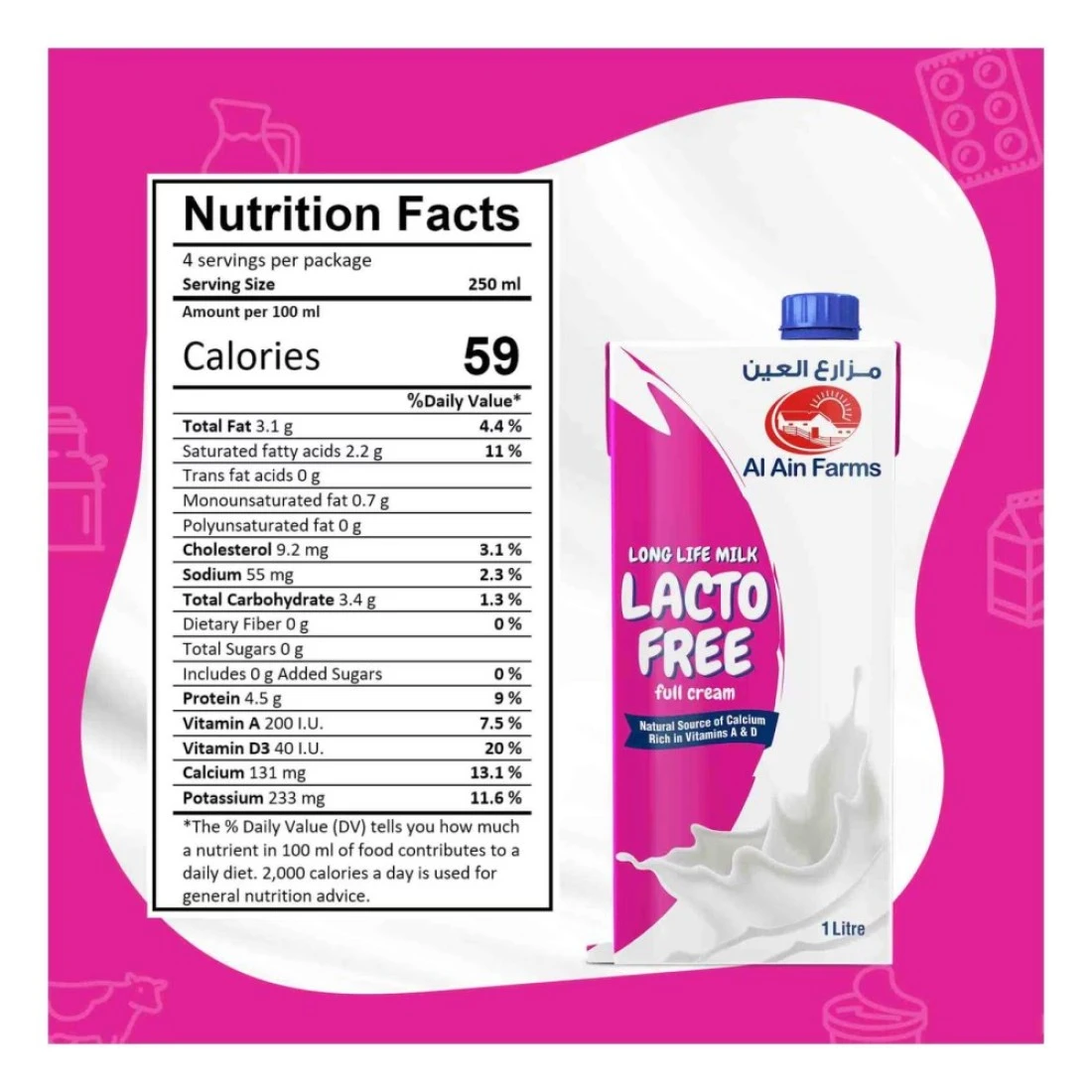 Al Ain Farms Lacto-Free Full Cream Long Life Milk 1L