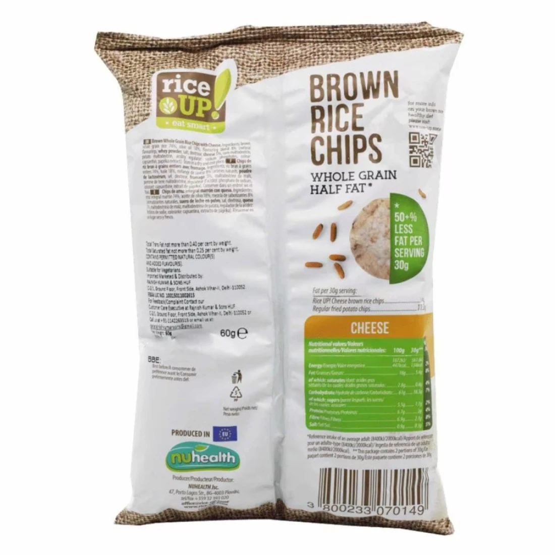 - Rice Up! Cheese Flavour Brown Rice Chips are gluten-free, catering to various dietary needs
