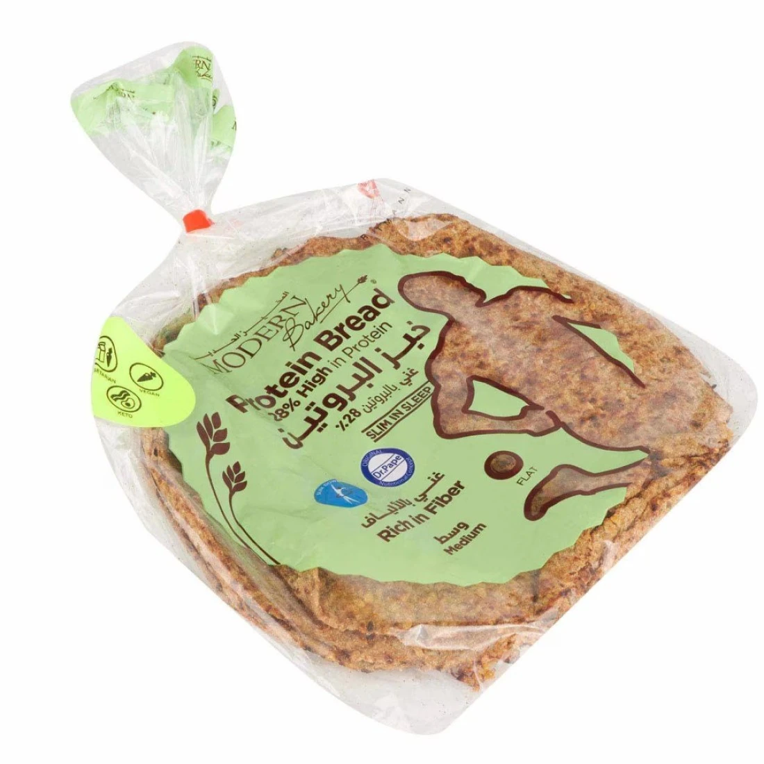 Modern Bakery Flat Arabic Protein Bread is a delicious and healthy bread option. Made with high-quality protein, this bread is perfect for those looking to increase their protein intake. It has a soft and fluffy texture, making it ideal for sandwiches or toasting. The bread is also low in carbohydrates, making it suitable for those following a low-carb diet. Enjoy this nutritious and tasty bread as part of a balanced diet.