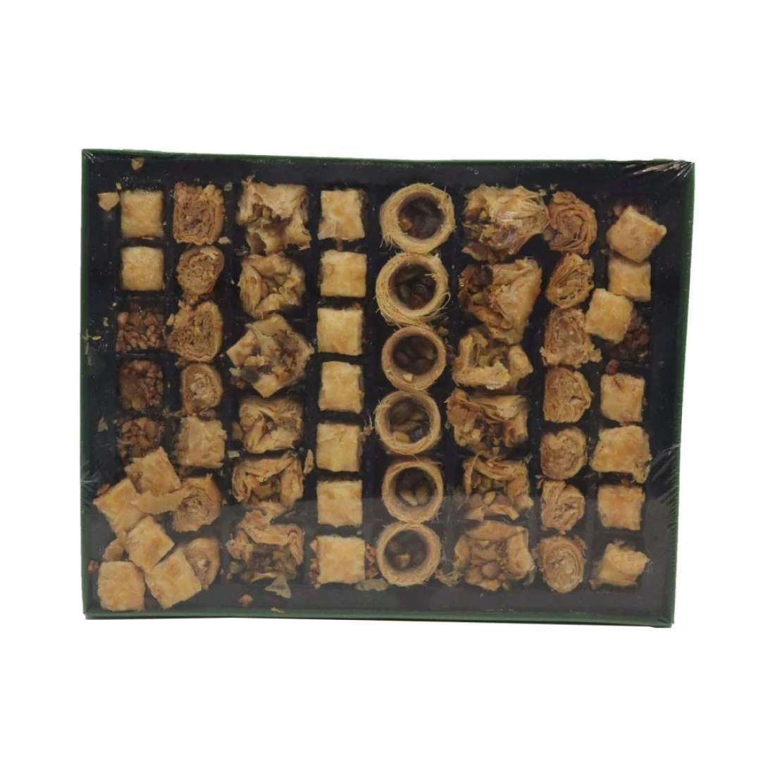 - Each piece is made of crispy, paper-thin layers of Phyllo dough filled with roasted chopped nuts and smothered in sweet syrup