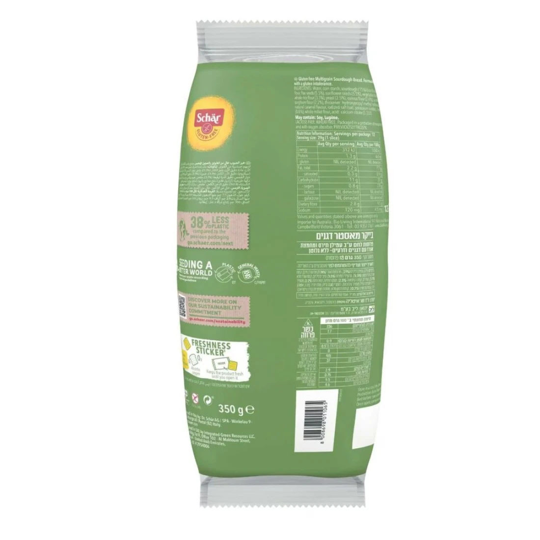 ingredients : Corn Starch, Sourdough 20% (Rice Flour, Water), Water, Rice Flour, Sunflower Seeds 6, 6%, Flax Seed 6, 6%, Vegetable Fiber (Psyllium), Quinoa Flour 2, 9%, Apple Extract, Sorghum Powder 2. 6%, Yeast, Sunflower Oil, Thickener Hydroxypropyl methylcellulose, Chestnut Flour 1, 0%, Salt and Caramelized Sugar