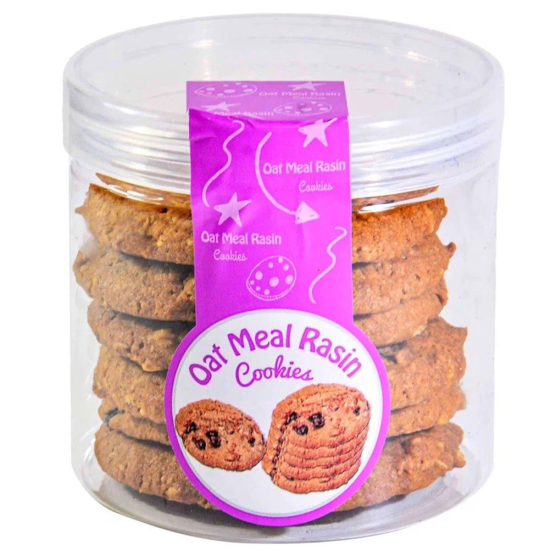 ingredients : Flour,Sugar, Margarine ,Oil, Water,Sal,Soy, Dry Milk,Sodium Benzoate,Butterflavor, Oats, Raisins,Niacin, Reducediron, Thiamine Mononitrate, Riboflavin,Folic Acid, Molasses,Rice Flour, Raisingagent Sodium,Eggs,Cinnamon,Salt,Emulsifiers,Mono And Diglycerides.