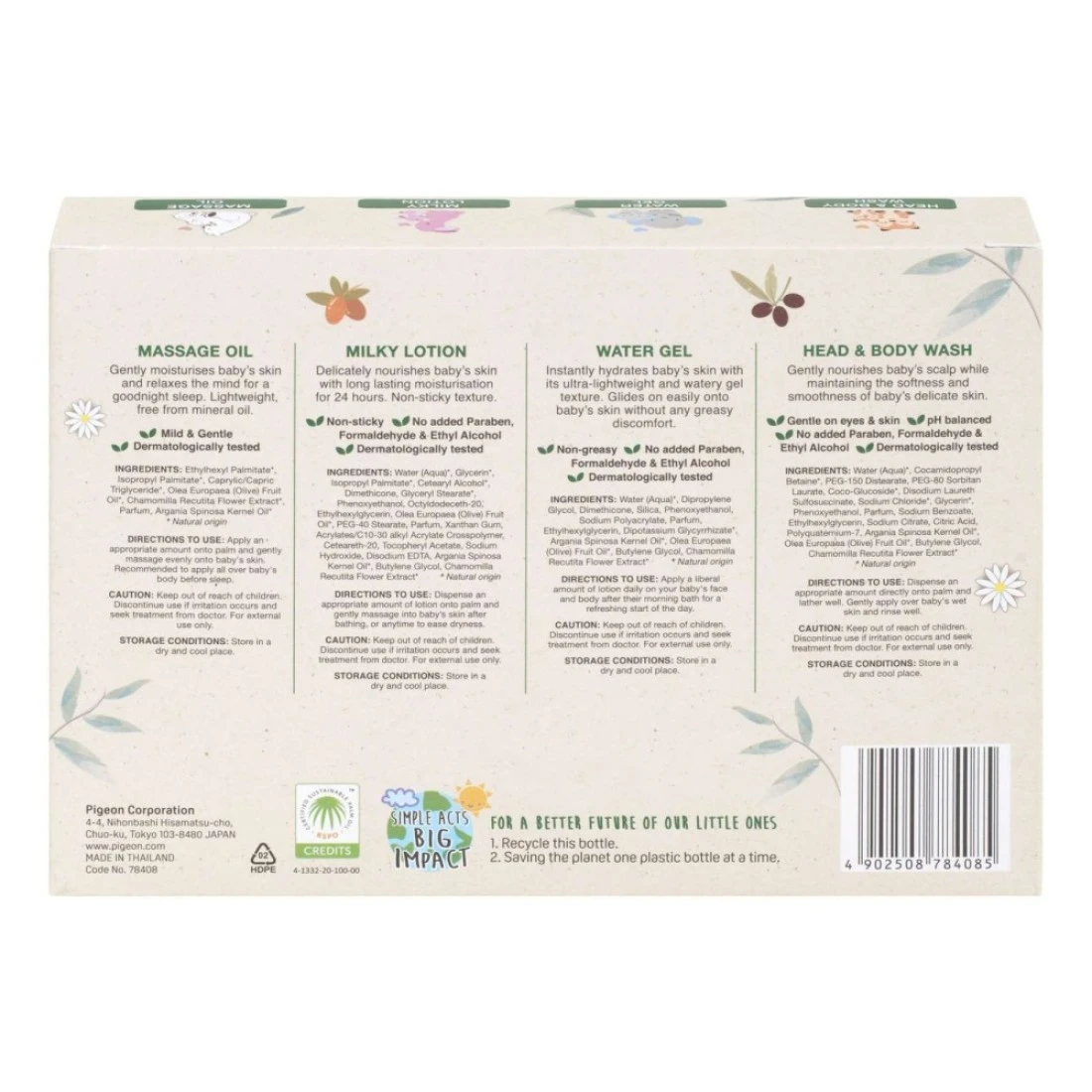 - It comes with Head and Body Wash 45ml, Water Gel 45ml, Milky Lotion 45ml, Massage Oil 45ml