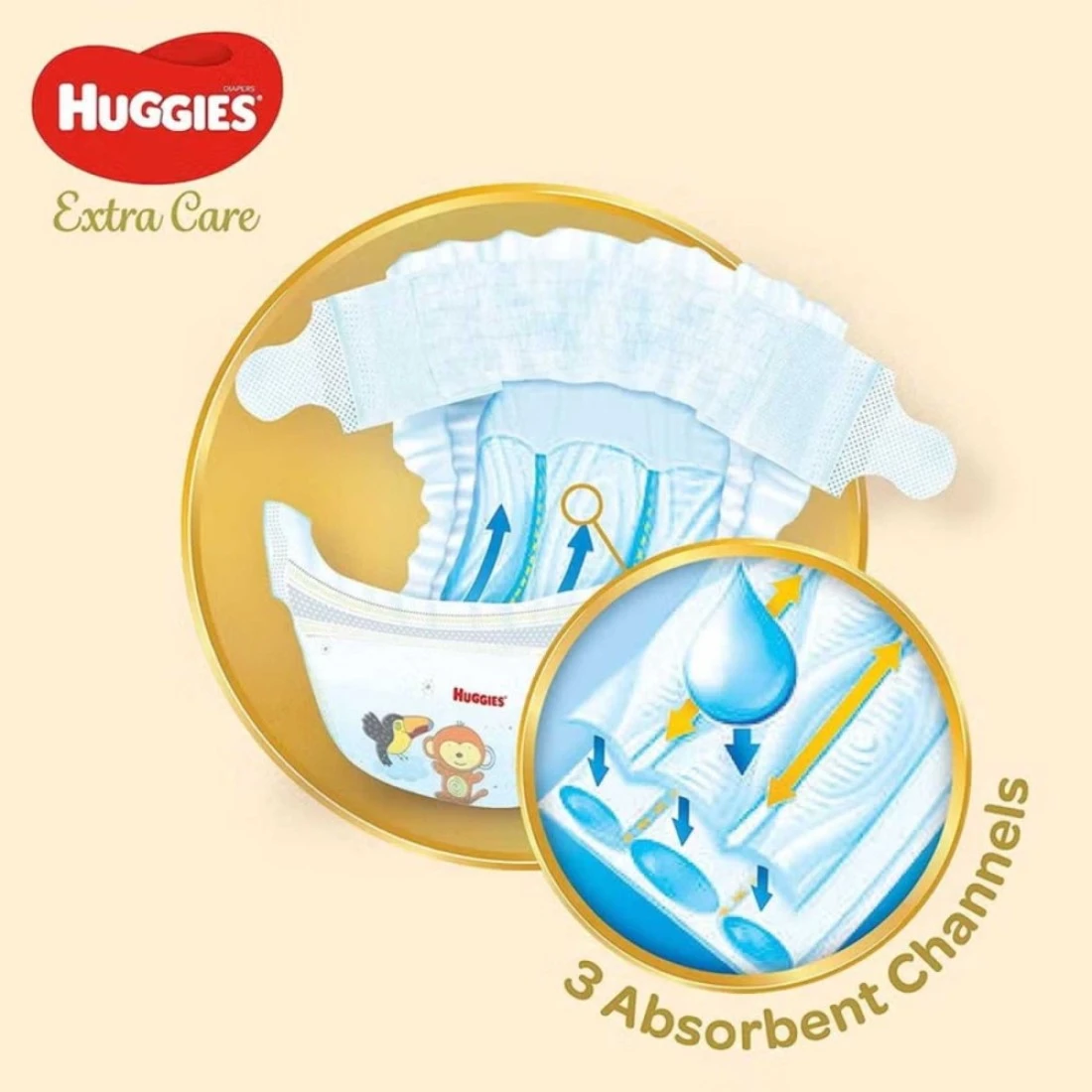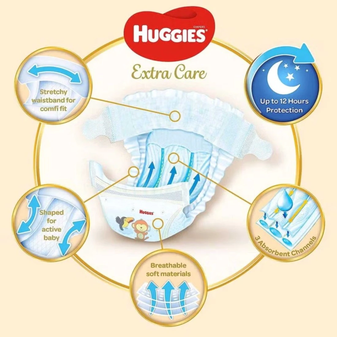 Huggies Extra Care Diapers are designed to provide superior comfort and protection for your baby. Featuring a soft, breathable outer layer and a unique absorbent core, these diapers help keep your baby dry and comfortable for longer periods. The gentle, hypoallergenic materials are ideal for sensitive skin, reducing the risk of irritation and rashes. With a snug fit and flexible design, Huggies Extra Care Diapers allow for easy movement, making them perfect for active babies. Additionally, the wetness indicator lets parents know when it's time for a change, ensuring your little one stays happy and dry throughout the day.