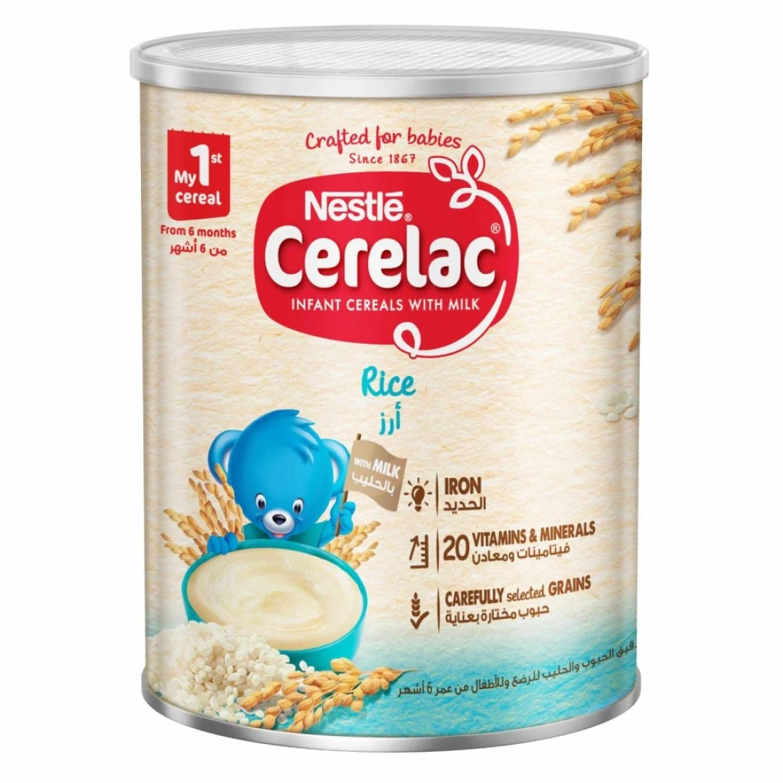 Nestle CERELAC Rice Infant Cereal is their first cereal with milk. Gluten free and fortified with 16 vitamins and minerals (including Iron, Calcium and Vitamin D). Prepared with carefully selected grains and NO preservatives, artificial colours or flavours. Tailored nutrition designed for babies from 6 months onwards.
