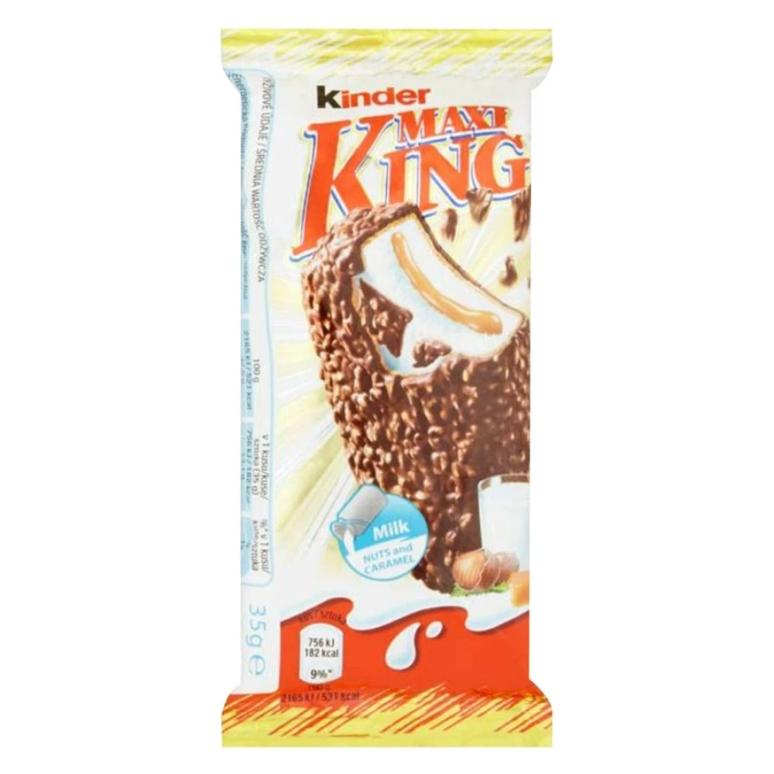 - Kinder Maxi King is a deliciously fresh hand-held milk chocolate hazelnut and caramel snack or dessert