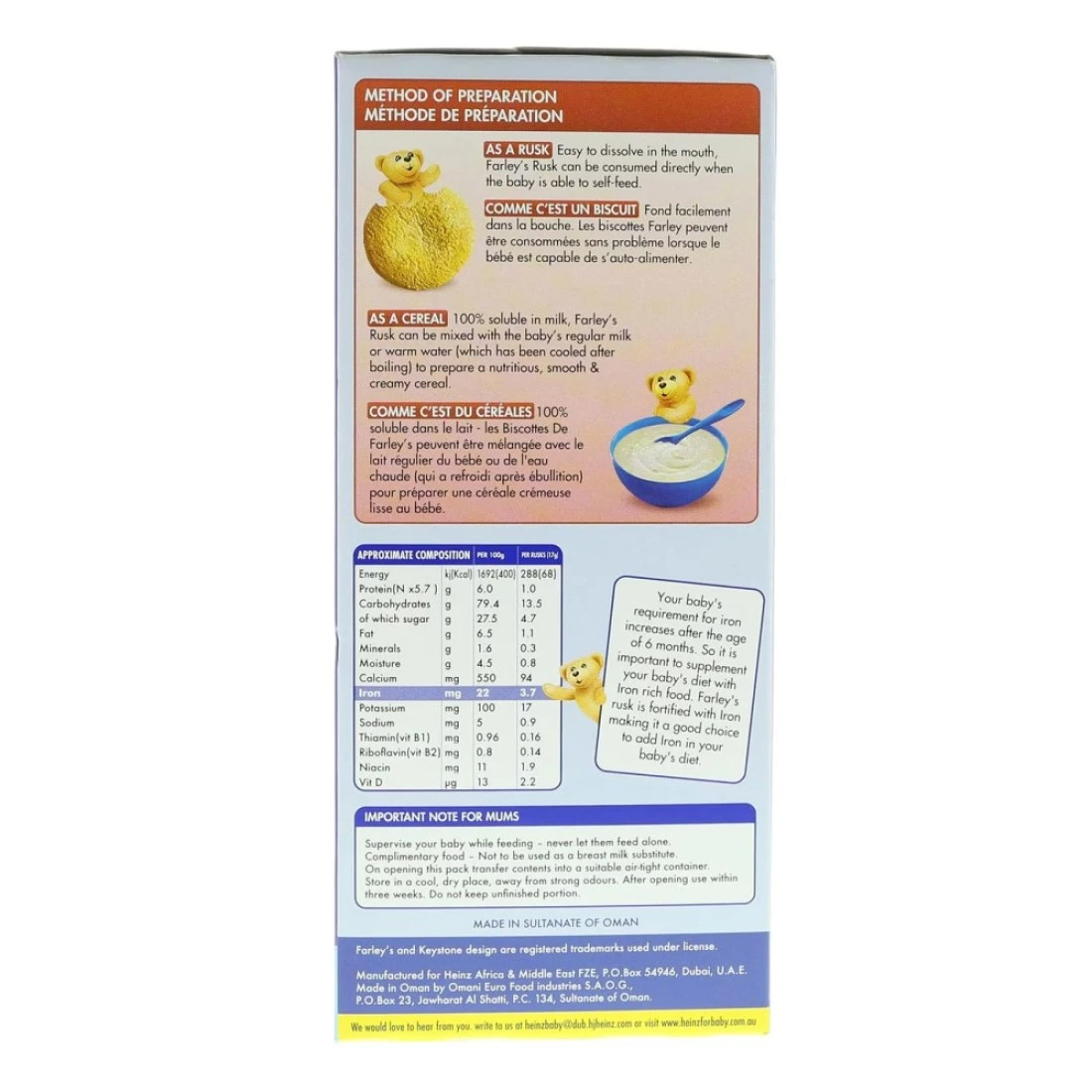 - Introduce Farley's Original Rusks in your baby’s diet from the sixth month onwards to fulfill the daily dietary requirements