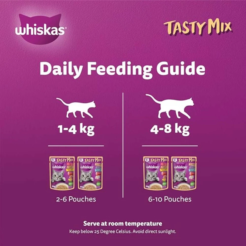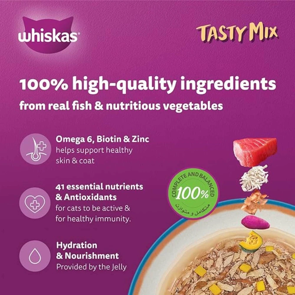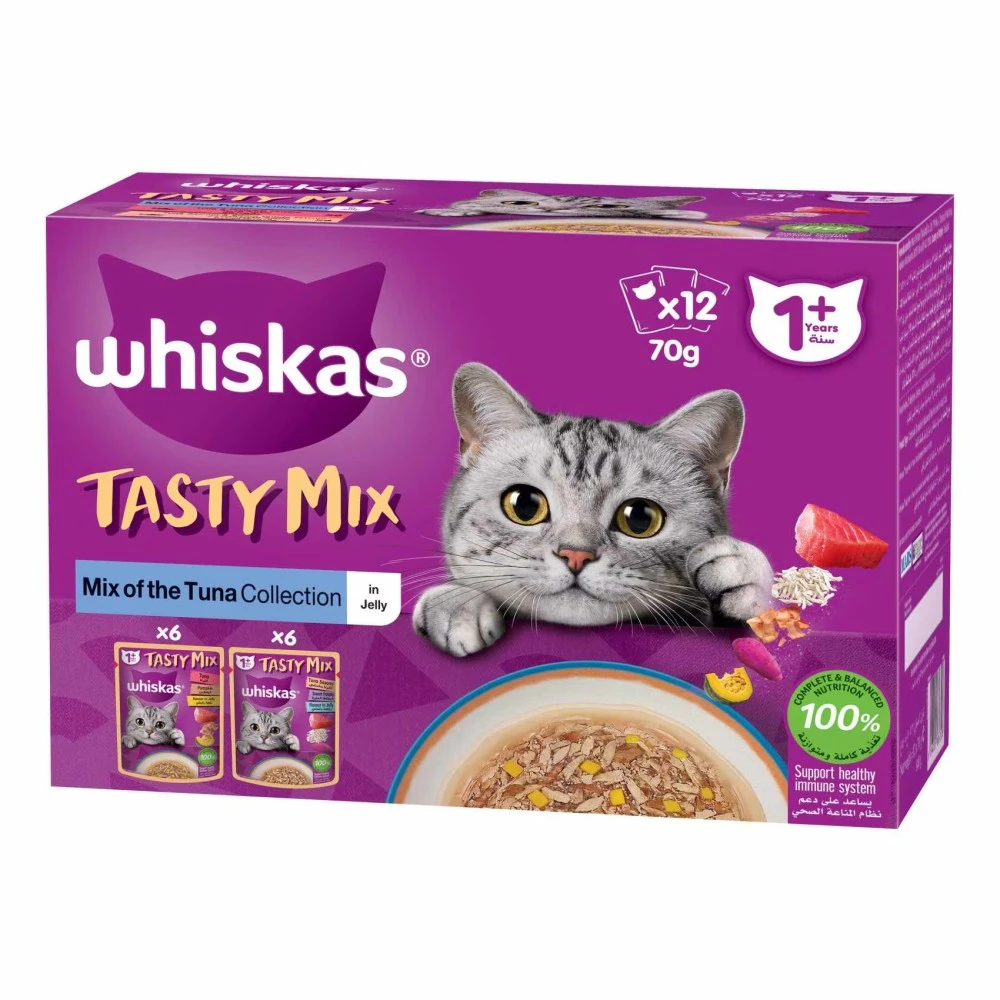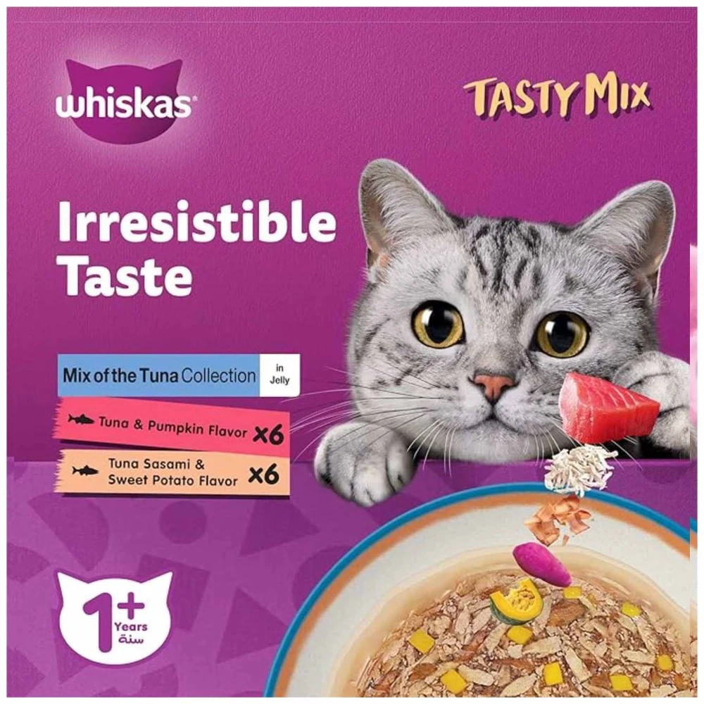 Whiskas Tasty Mix of Tuna Collection in Jelly Food for Cat, 1 Years and above, 70g Pack of 12