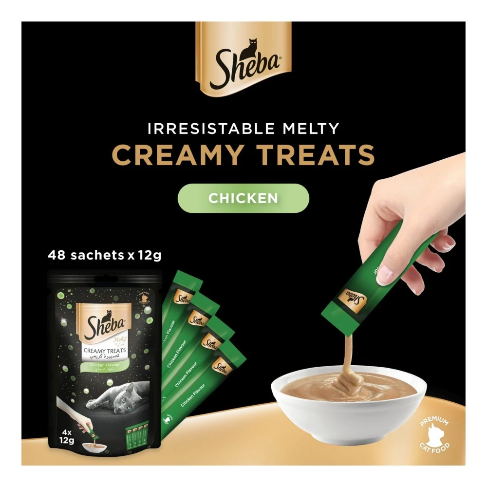Sheba Cat Food Melty Chicken Flavor Creamy Treats, 12g Pouches (Pack of 48)