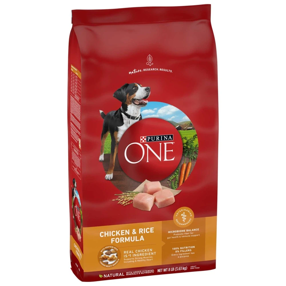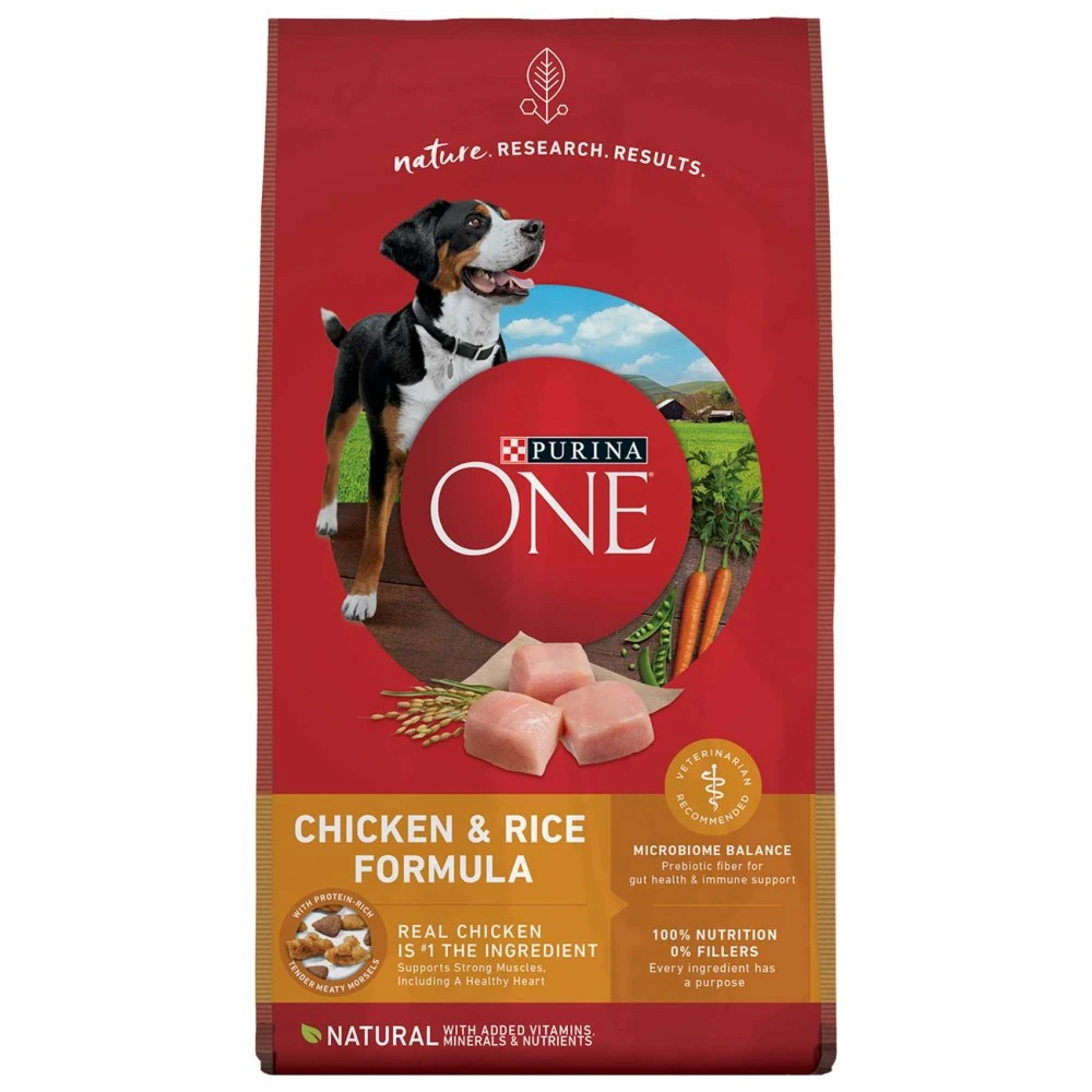 Purina ONE formulas combine nature and research for results you can see in your dog. Thanks to a SmartBlend® of high-quality ingredients, including natural prebiotic fiber, Purina ONE nurtures your dog's digestive microbiome along with his whole-body health. From a shiny coat and healthy energy to joint health and a strong immune system, you could see a difference in your dog in 28 days when you feed Purina ONE.