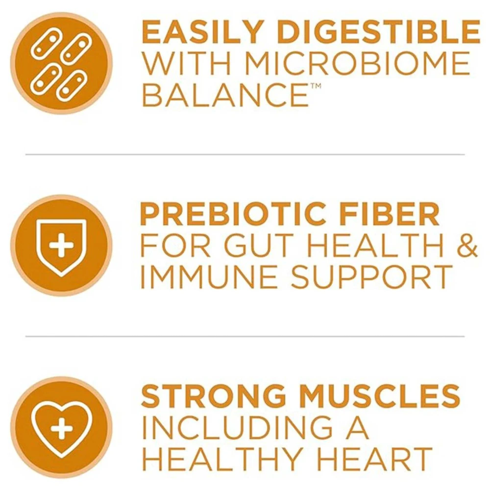 - EASILY DIGESTIBLE WITH MICROBIOME BALANCE®. A SmartBlend® of high-quality ingredients including prebiotic fiber.