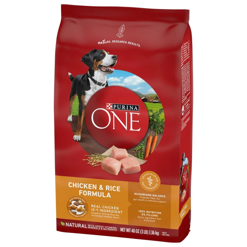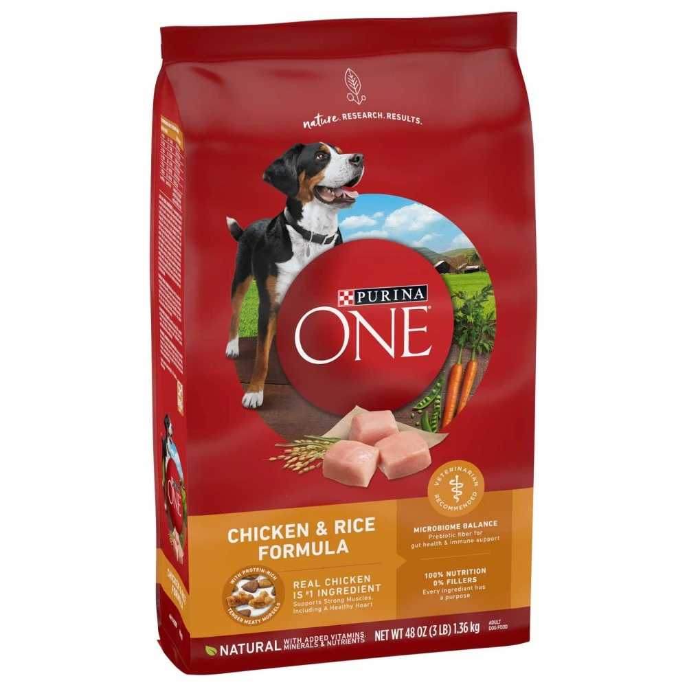 Purina ONE formulas combine nature and research for results you can see in your dog. Thanks to a SmartBlend® of high-quality ingredients, including natural prebiotic fiber, Purina ONE nurtures your dog's digestive microbiome along with his whole-body health. From a shiny coat and healthy energy to joint health and a strong immune system, you could see a difference in your dog in 28 days when you feed Purina ONE.