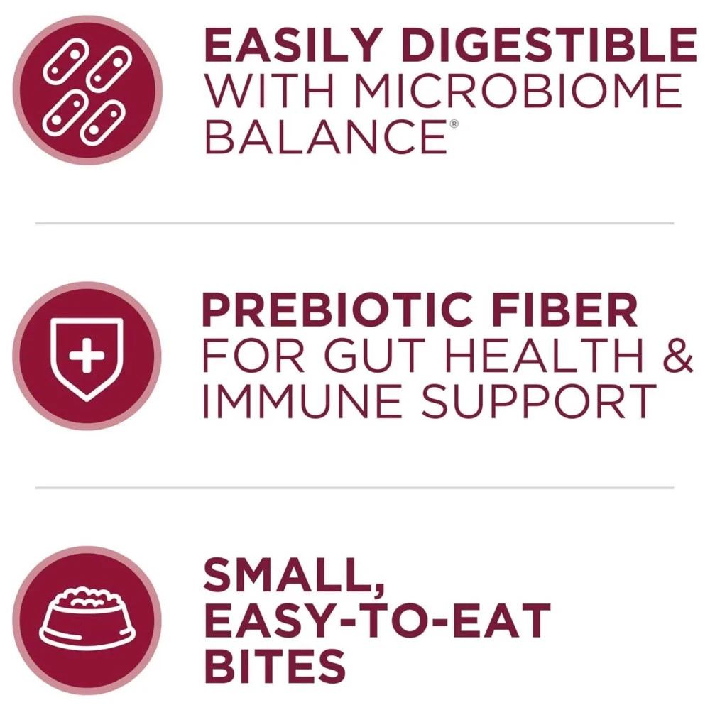 - EASILY DIGESTIBLE WITH MICROBIOME BALANCE®. A SmartBlend® of high-quality ingredients including prebiotic fiber.