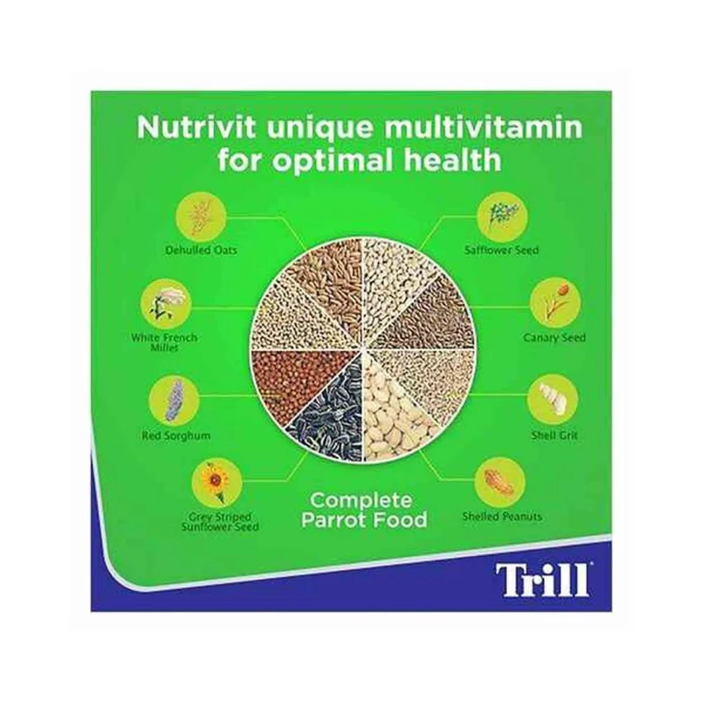 - Trill Complete Parrot Food is expertly crafted with a balanced blend of seeds, grains, and vitamins to support optimal health and vitality in your parrot