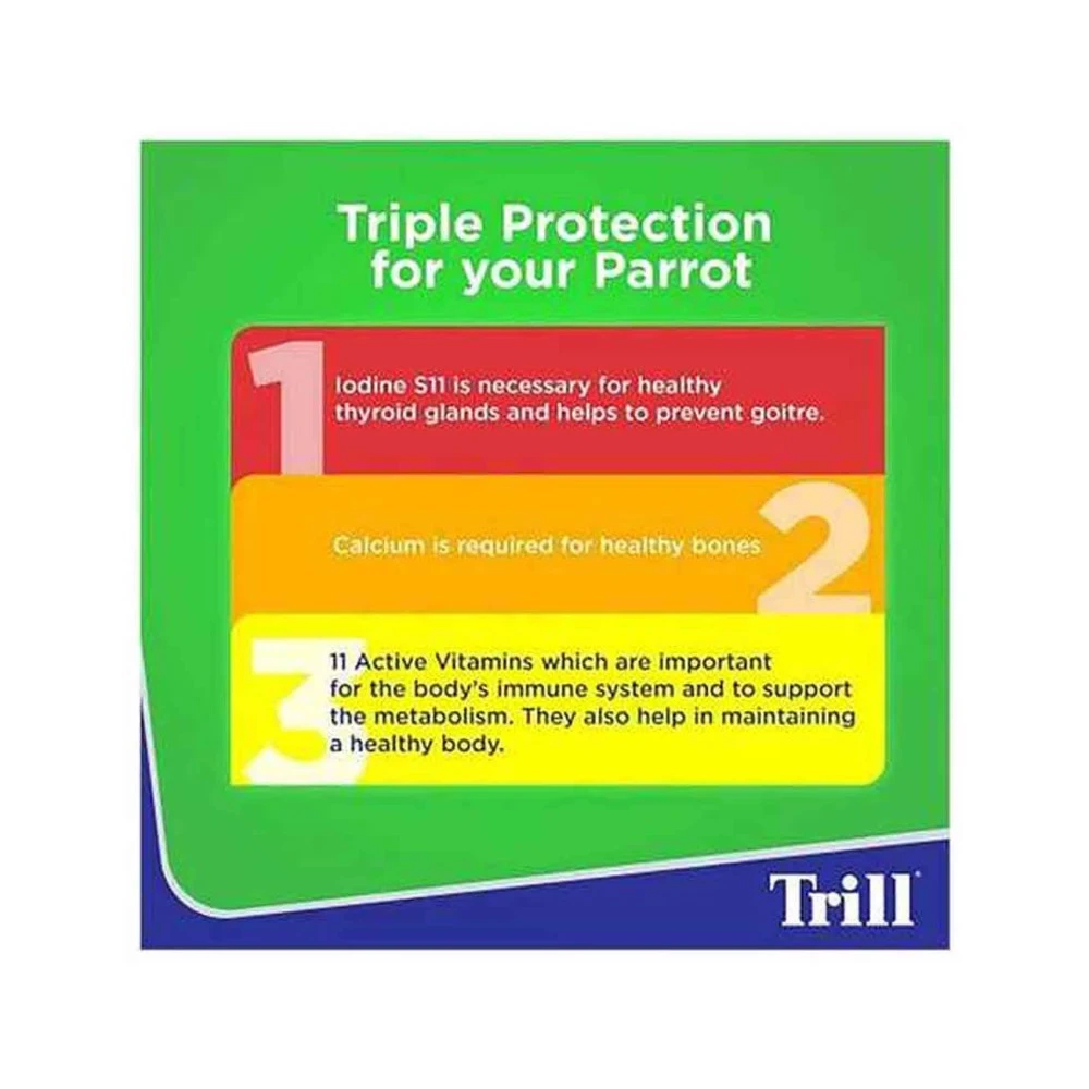 - Enhanced with essential vitamins and minerals, Trill Complete helps promote a strong immune system and vibrant plumage for your pet bird